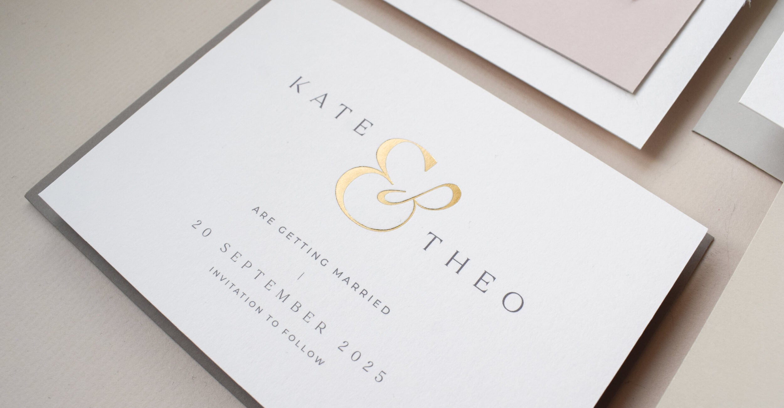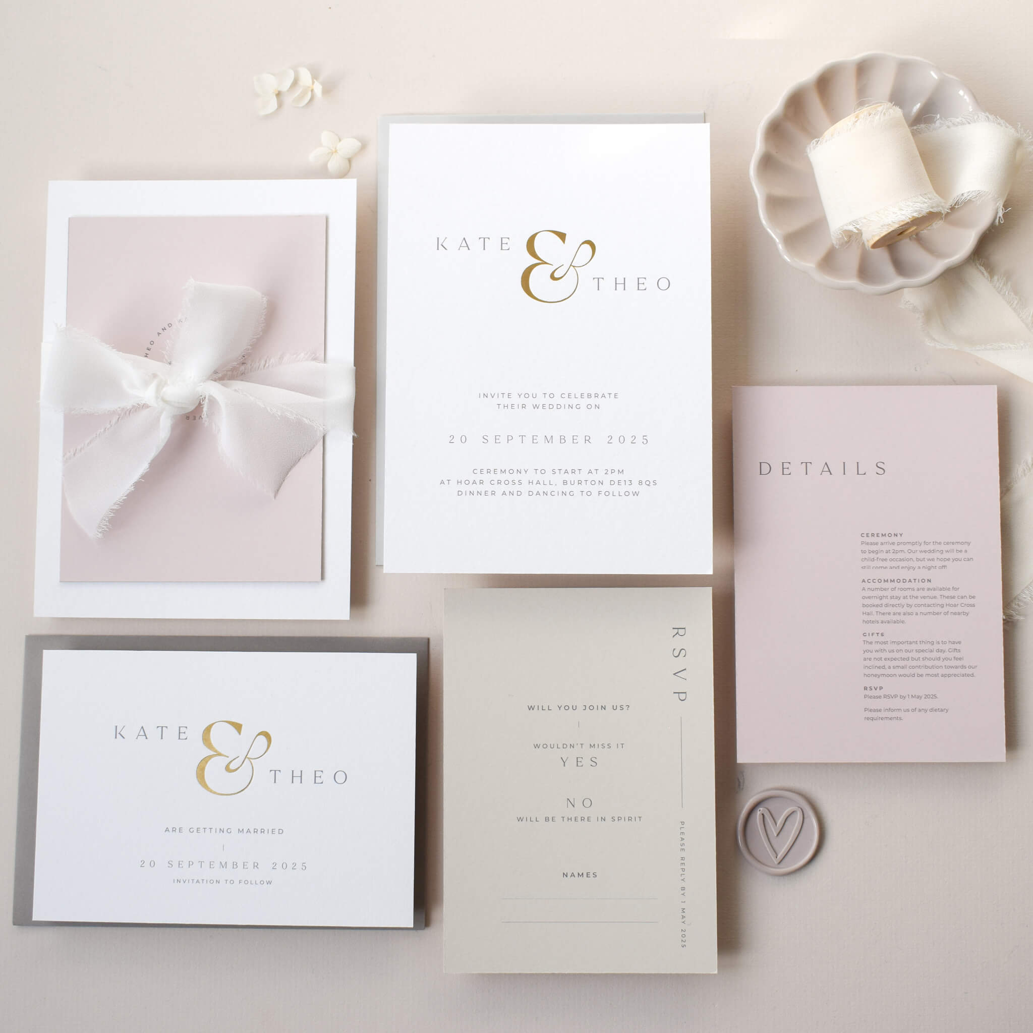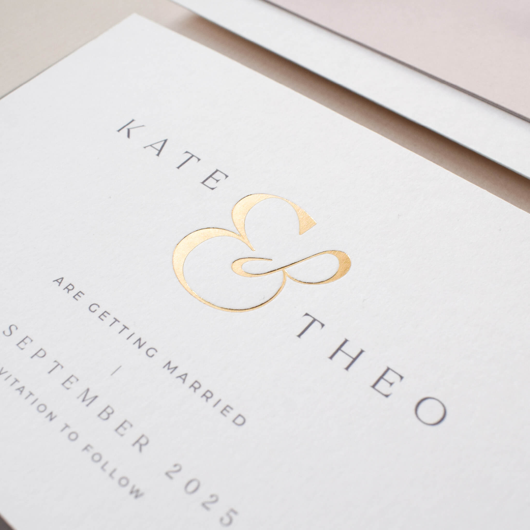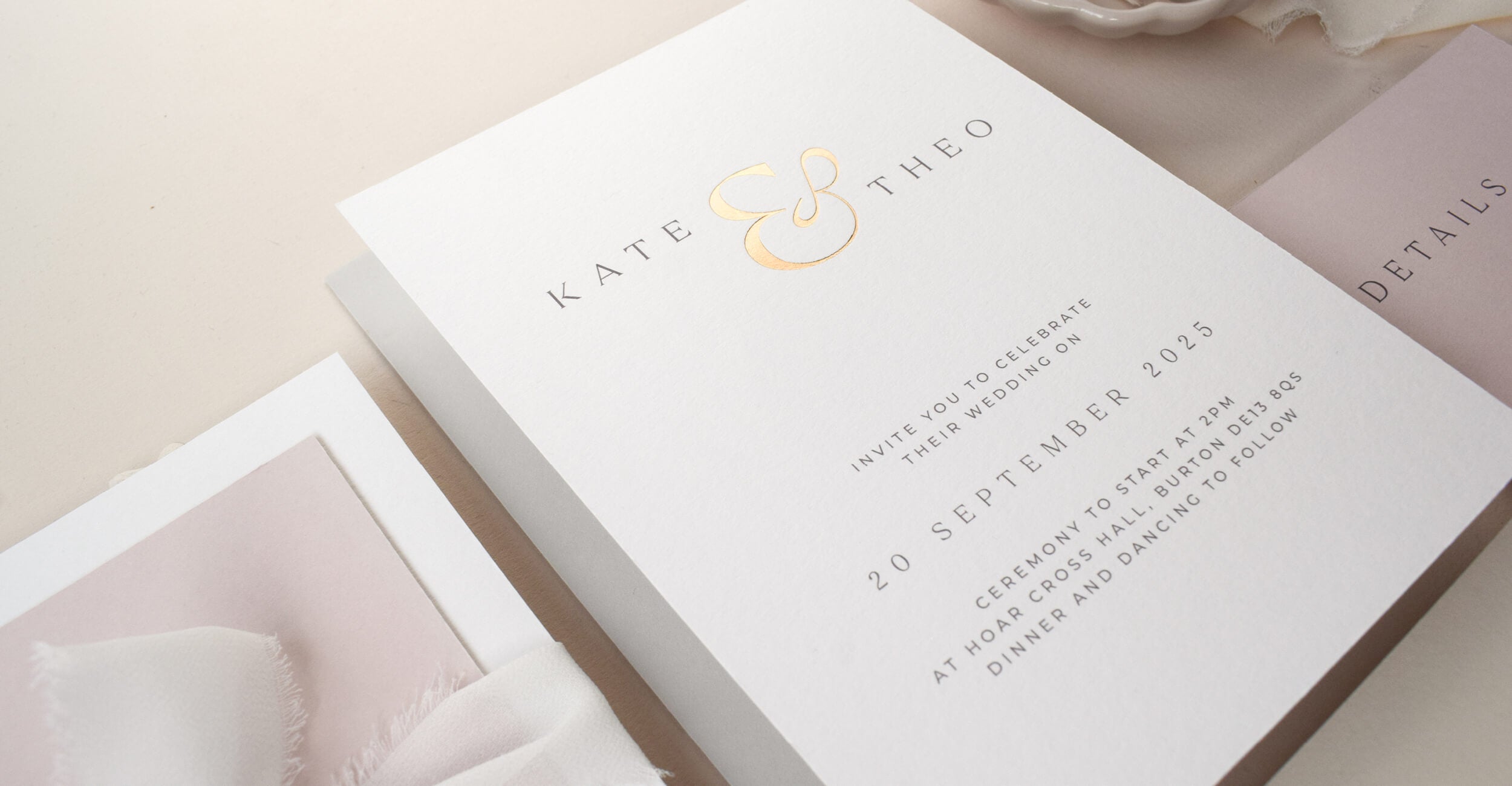 The Ampersand collection is understated elegance at its absolute best, the minimalistic design of the suite is complimented perfectly by an exquisite ampersand, which has been brought to life with gold foil. The combination of modern typography, white space and classic design give each element a feeling of grace and quiet dignity.
