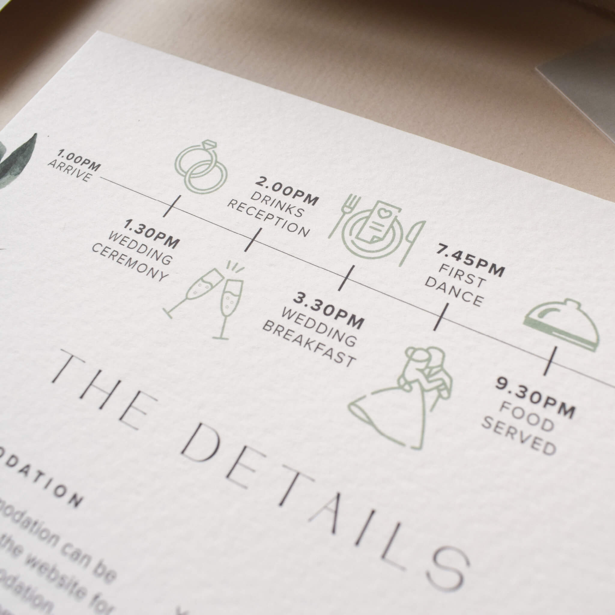 Collaborating closely with you, I'll dive into content, design, and layout, ensuring every aspect aligns seamlessly with your style and vision. Together, we'll create a one-of-a-kind design that not only captures your personality but also sets the tone for your special day. From elegant invitations to stunning on-the-day stationery, your bespoke suite will be a reflection of your love story, beautifully presented for your unforgettable celebration.