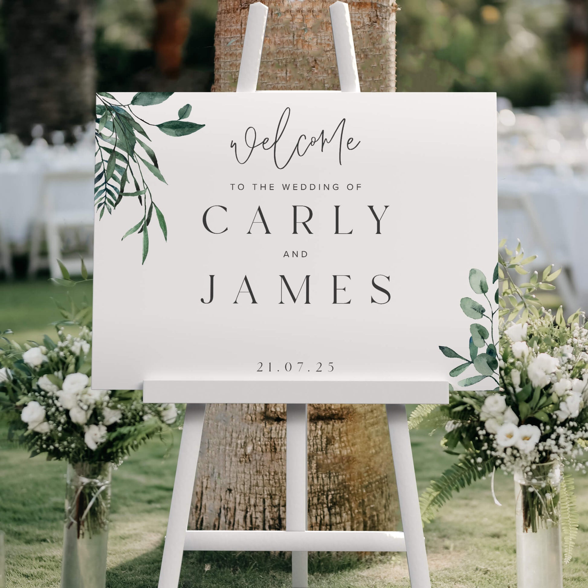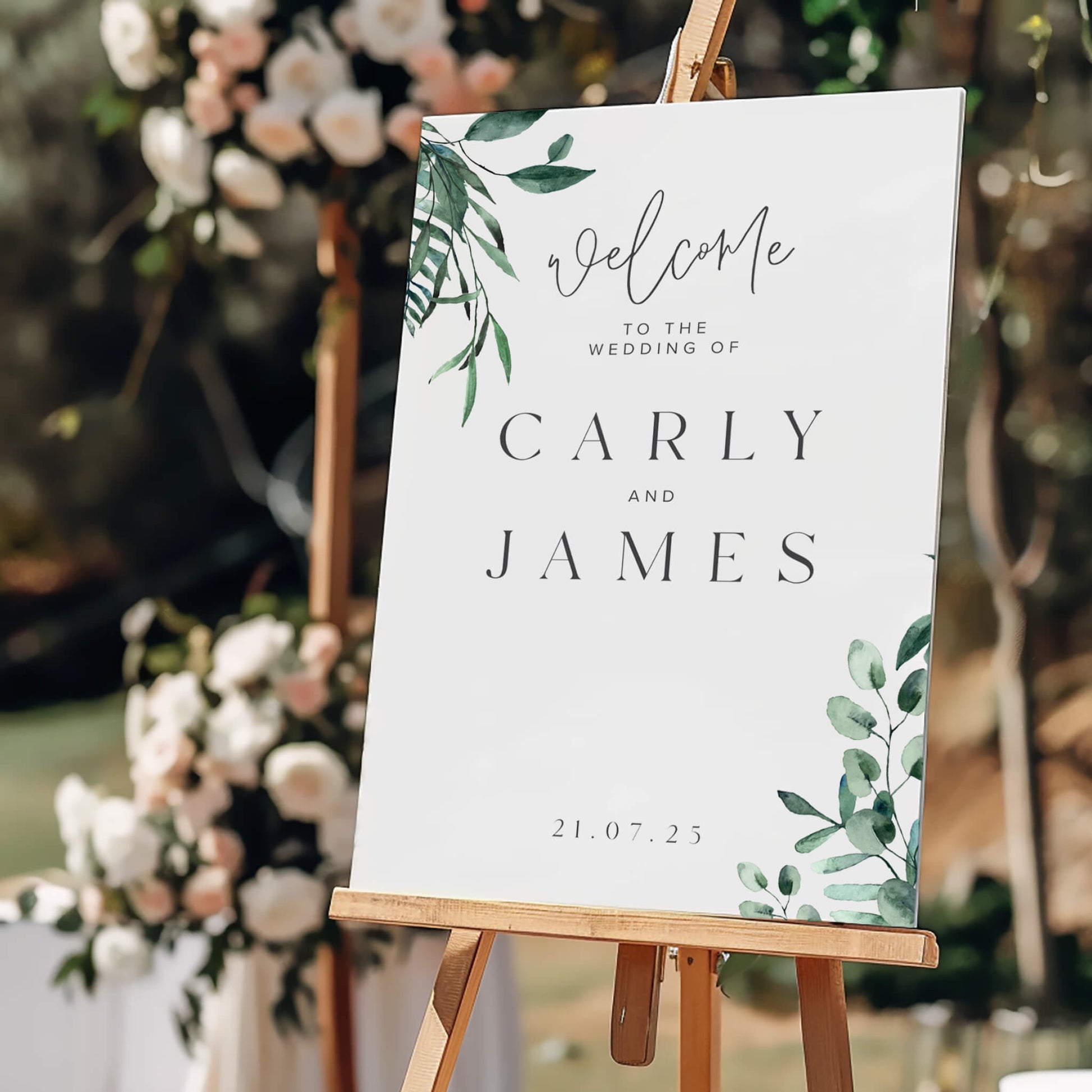 This welcome sign beautifully showcases your names and wedding date, adding a personal and memorable touch to your celebration. Choose between portrait or landscape styles.