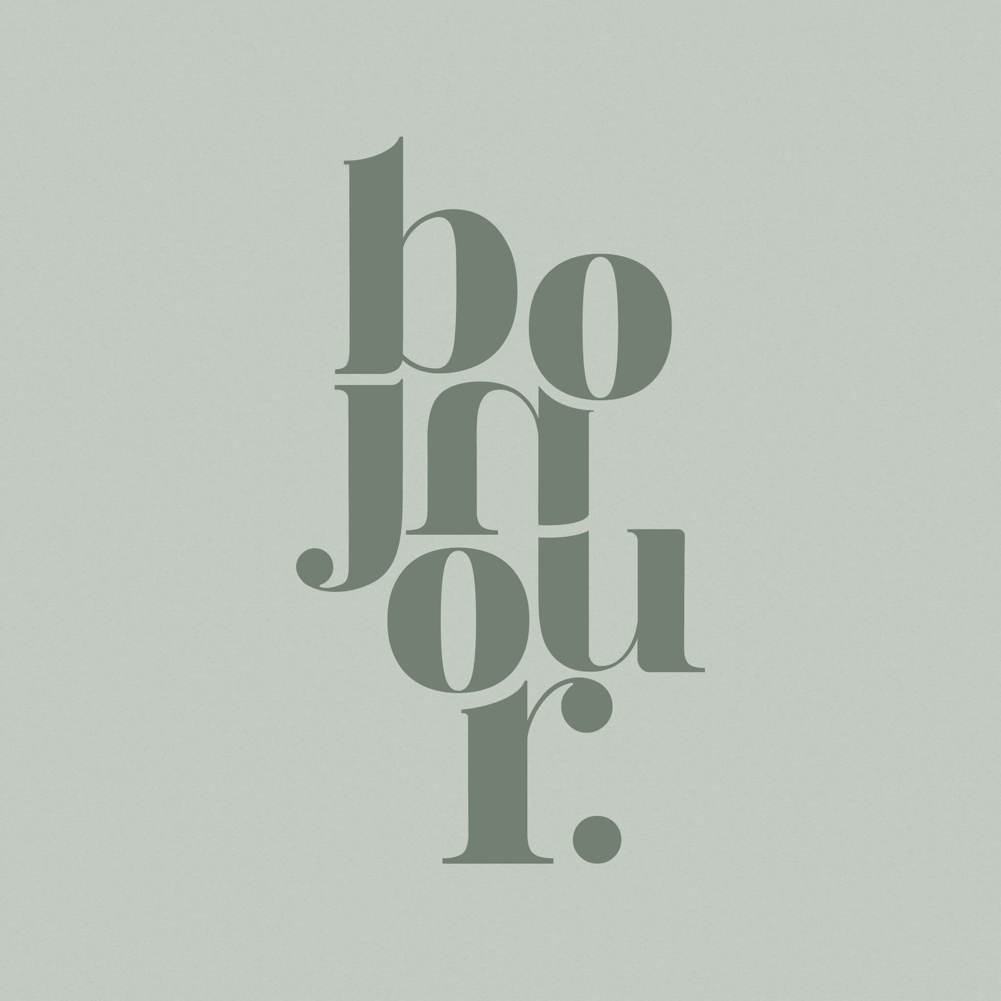 This typographic home print features the French word 'Bonjour' in a dynamic design in which the letters have been meticulously edited and arranged to stack on top of each other in a stunning arrangement.