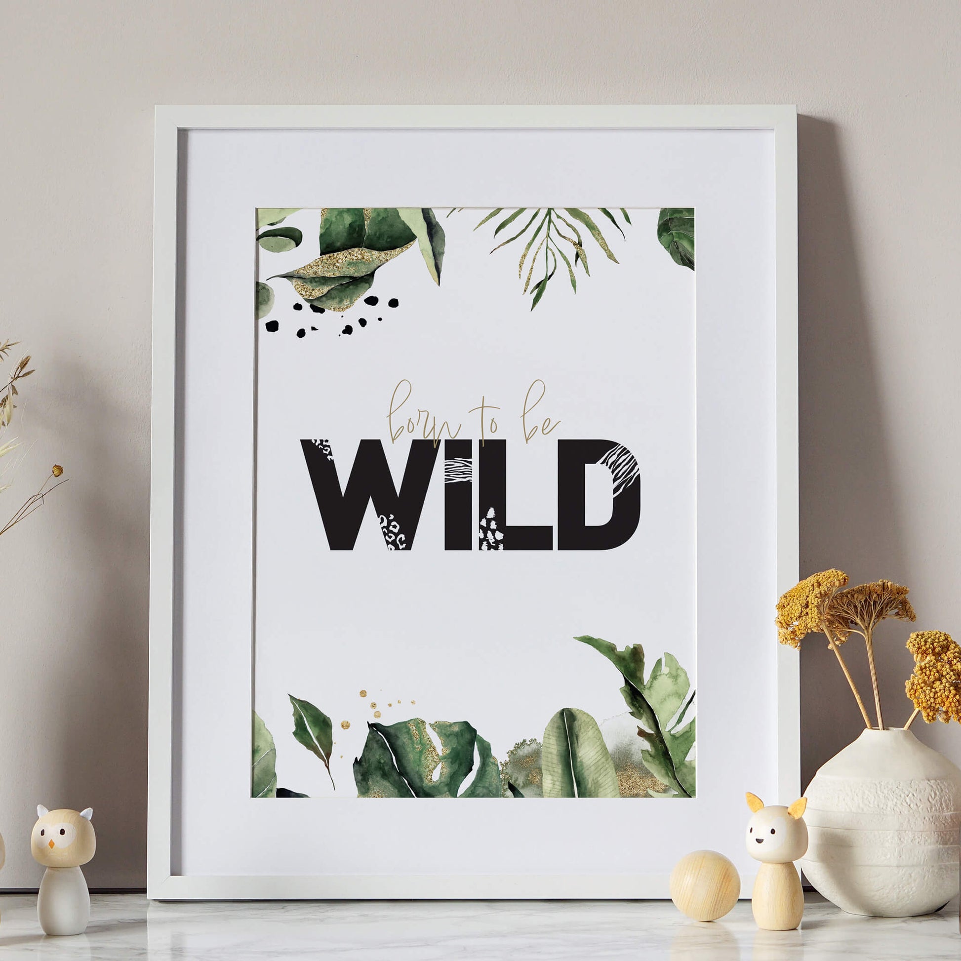 This Born To Be Wild jungle print combines bold typography and beautiful botanical leaves. All of the leaves were originally created using watercolours, a time consuming process, but which gives depth and a feeling of delicacy.