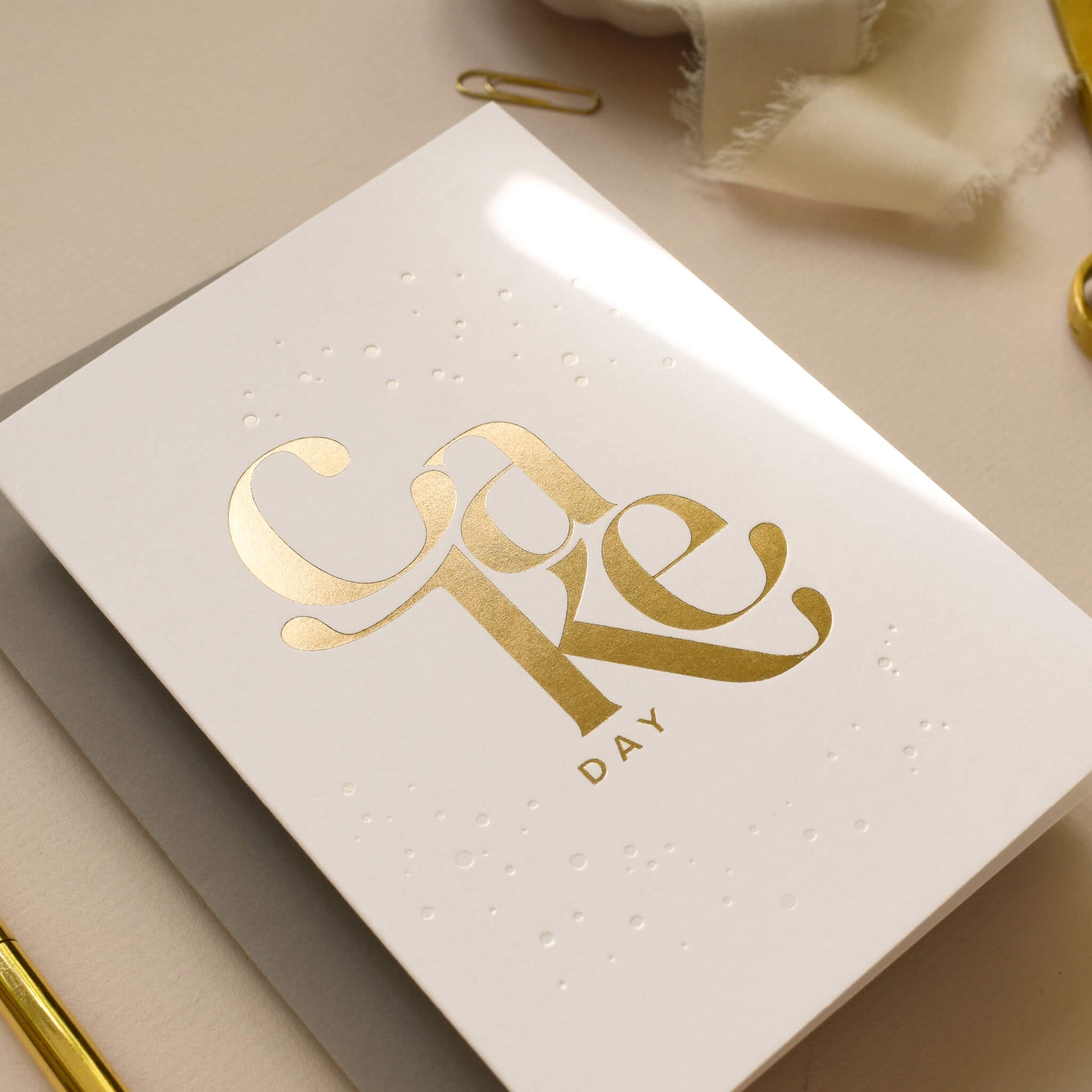 This stunning bold, typographic card features the words 'Cake Day’ and will make a very special card for a birthday. The combination of the bold and dynamic design, the beautiful tactile nature of the paper and the exquisite shine of the foil makes this a stand-out card that will certainly delight the recipient.