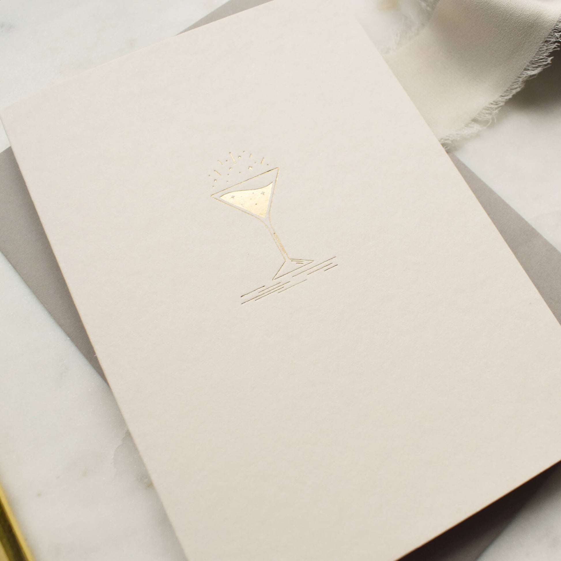 This stunning congratulations card features an illustration of a cocktail printed in gold foil. The combination of the minimalistic design, the wonderful stone coloured tactile paper and the exquisite gold foil make this a stand-out card, perfect for any occasion.
