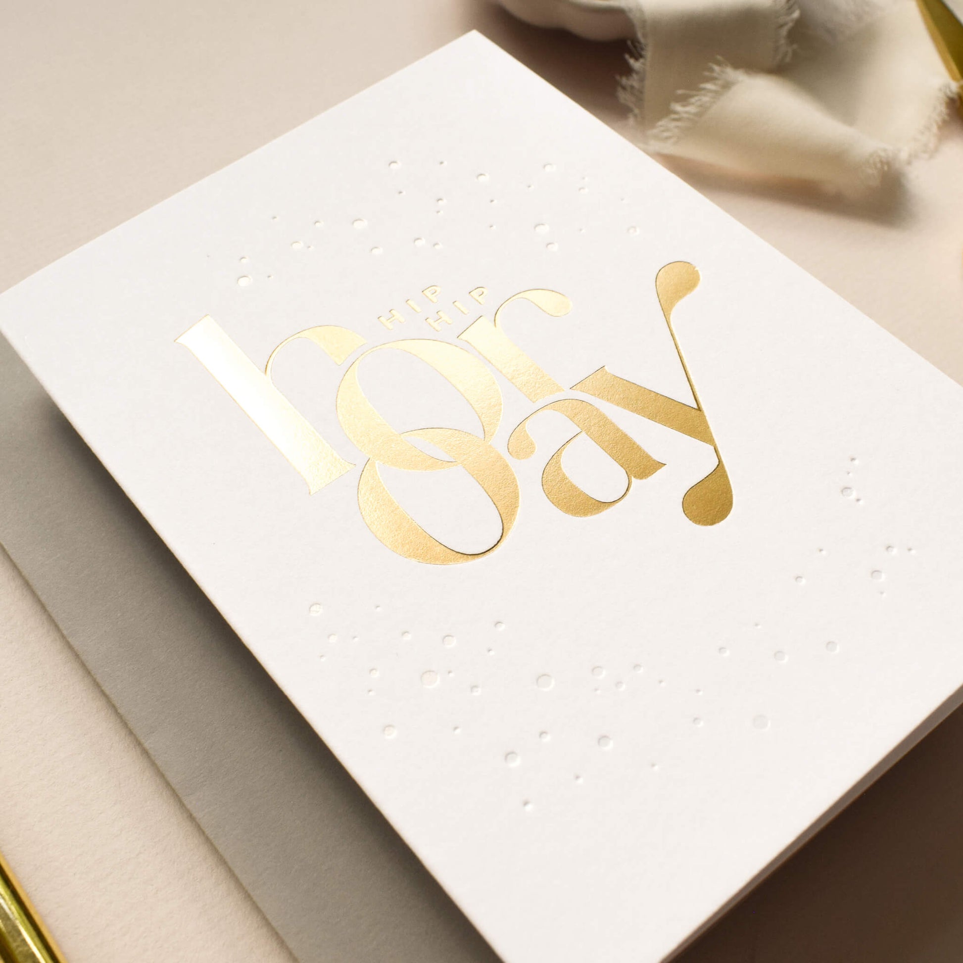 This bold and modern hot foil card featuring a typographic design and the words 'Hip Hip Hooray’ will be a wonderful card to celebrate a special birthday. The combination of the luxury print, the dynamic design and the beautiful paper makes this a stand-out birthday card that will delight the recipient.