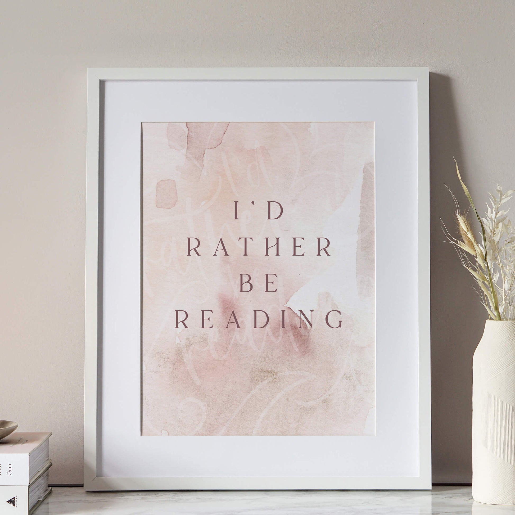 For those who’d choose a quiet evening with a good book over just about anything else, this I’d Rather Be Reading print says it all. The text is elegantly centred, with the same phrase ghosted softly behind in a flowing handwritten style and surrounded by delicate flourishes, this piece captures that peaceful, content feeling of reading time perfectly.