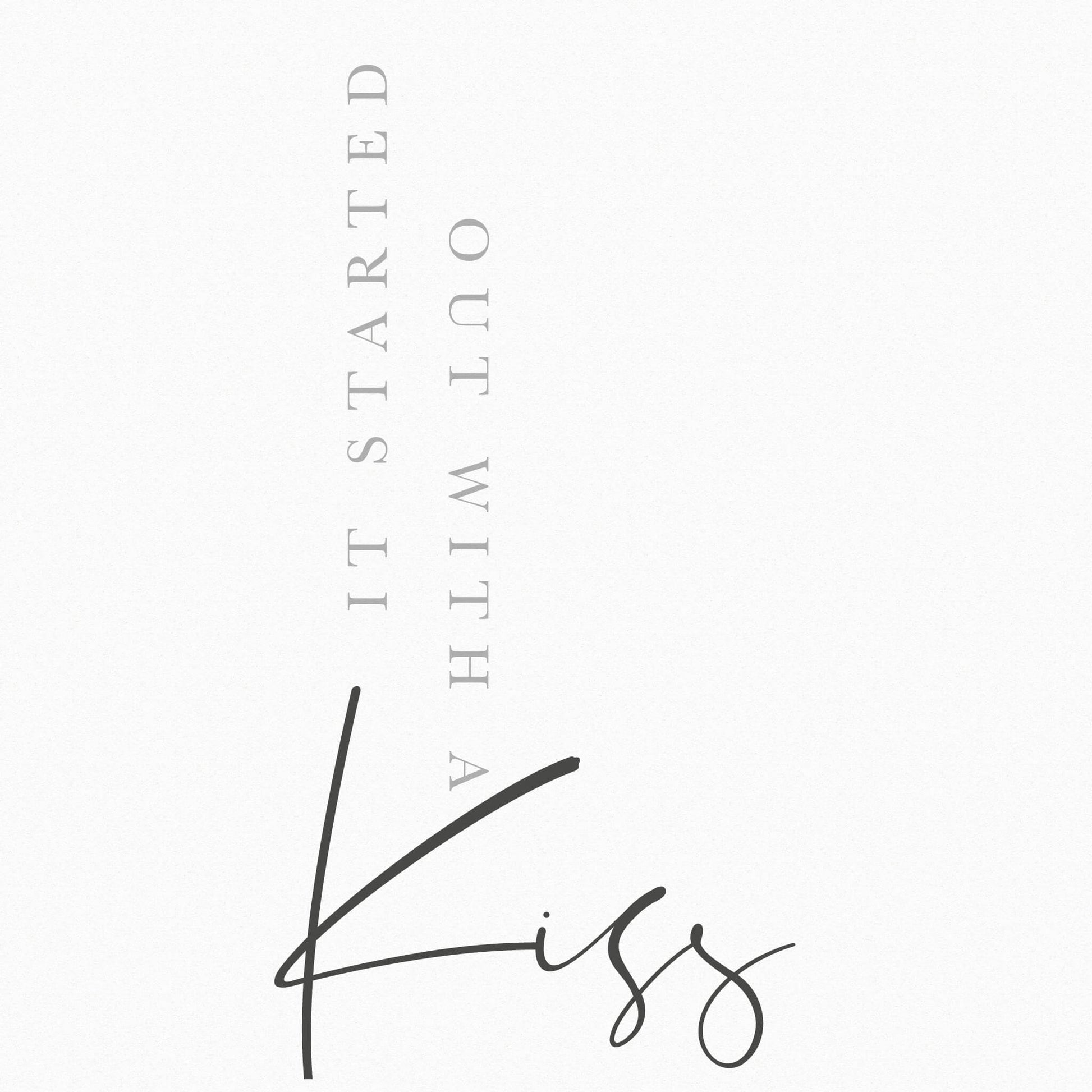 This minimalistic print features the quote 'It started out with a kiss' in two elegant typefaces which contrast beautifully with one another.