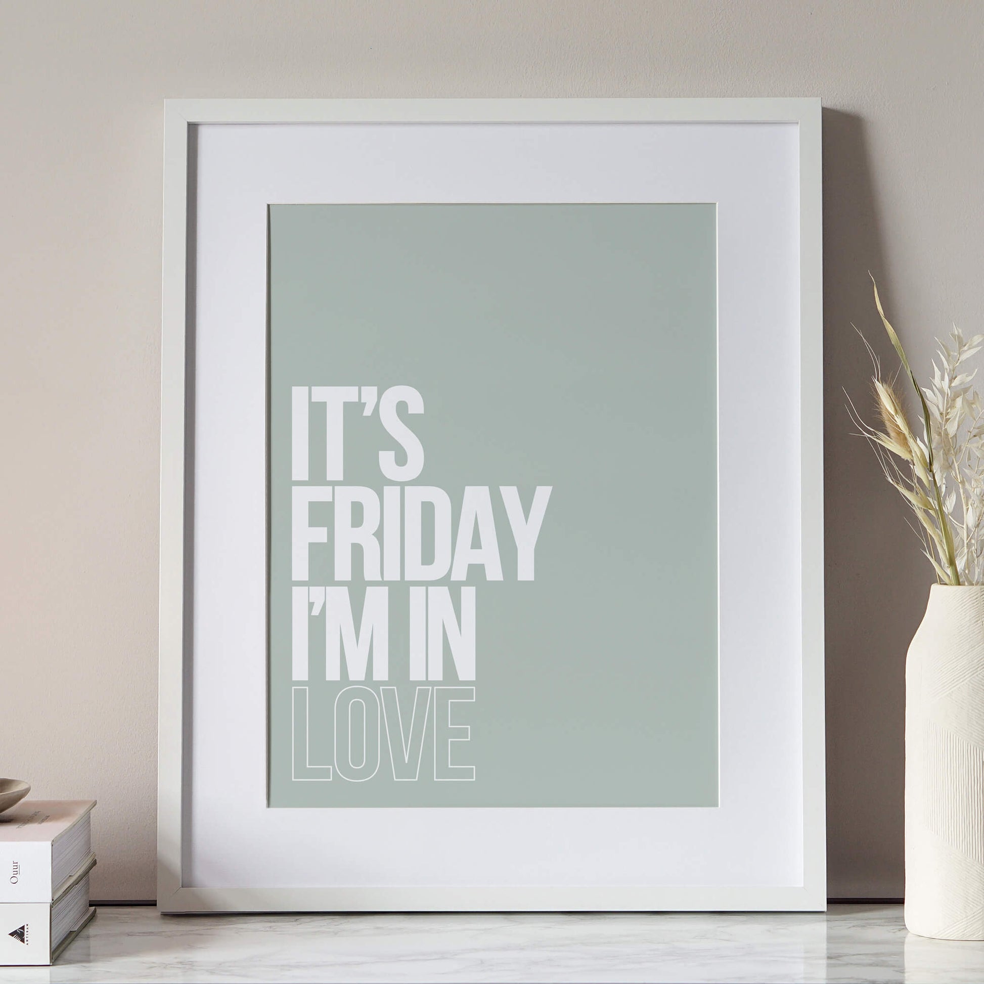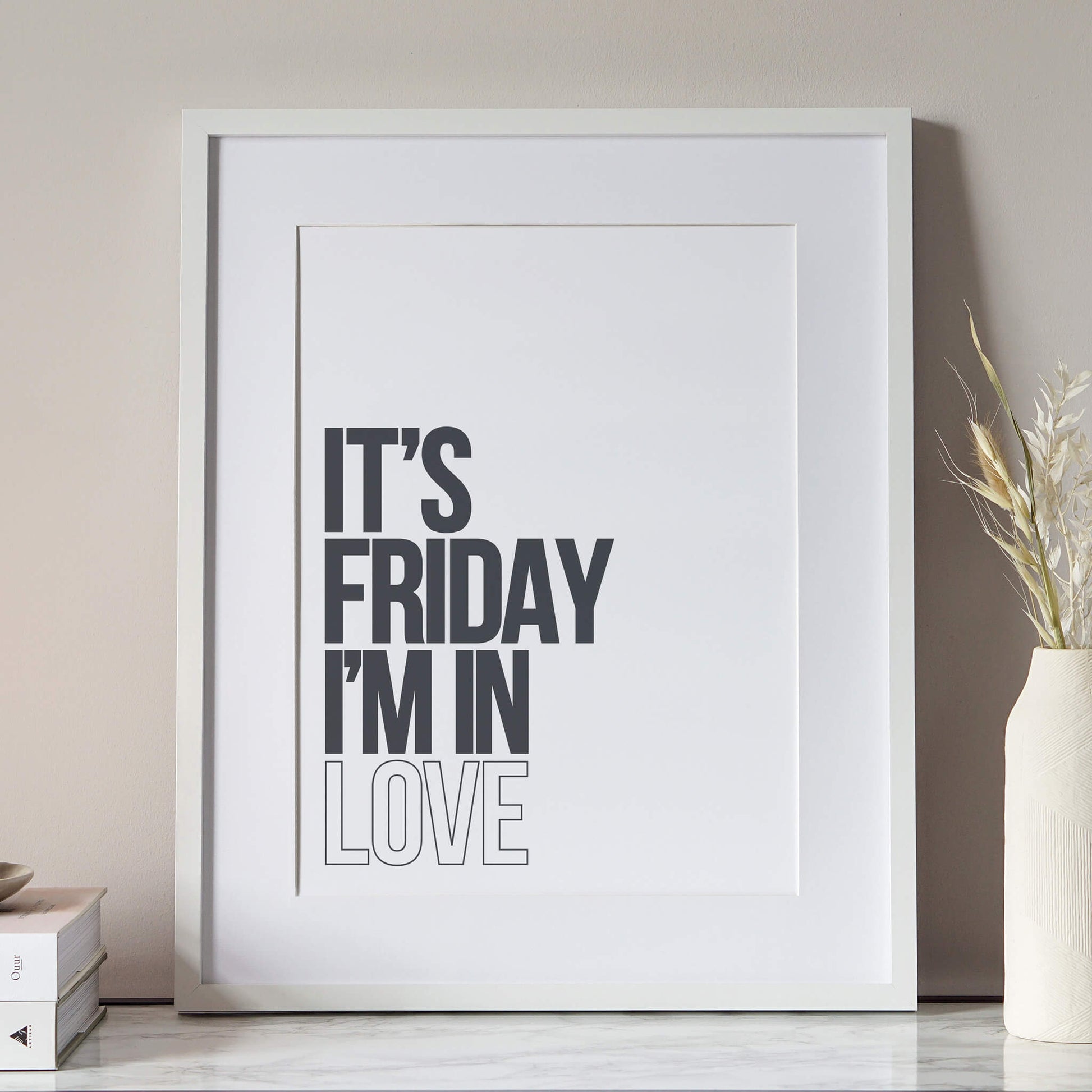 It’s Friday, I’m In Love, is a minimalistic print featuring the famous song lyric. It is one of my most popular prints and possibly my favourite, although that is a little bit like choosing your favourite child.