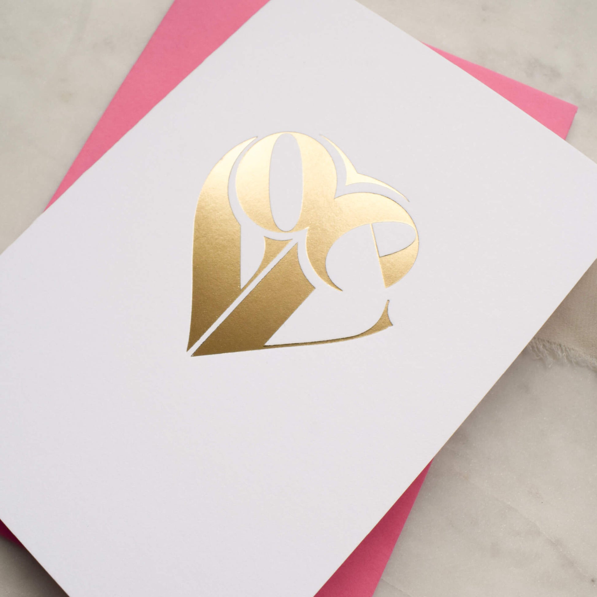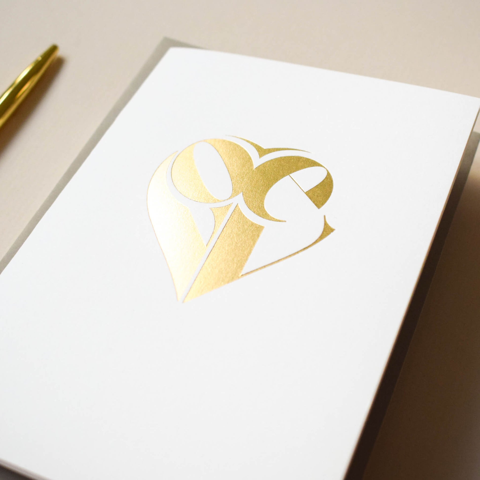 Embrace the allure of love with this captivating typographic card, showcasing the word 'love' in a bold and contemporary design, cleverly arranged in a heart shape. The synergy of this dynamic layout, coupled with the delightful tactile feel of the premium paper and the touch of exquisite gold foil, culminates in a card that truly stands out. Elevate your expression of affection, because love deserves nothing less than a card that embodies beauty and distinction.