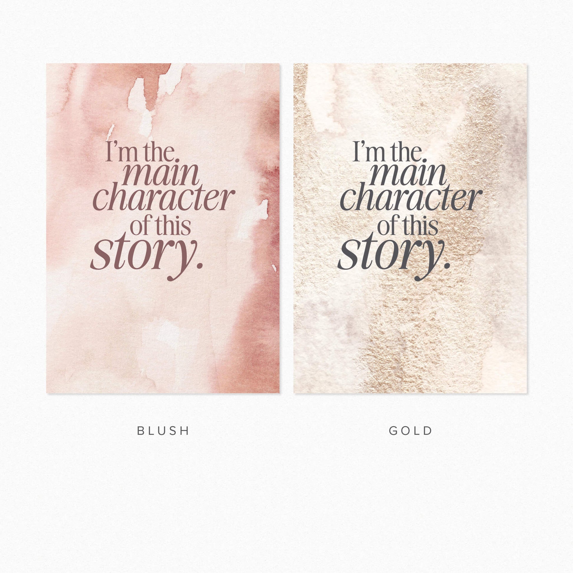 This bold and stylish print featuring the quote ‘I’m the main character of this story’ is a reminder to take up space and live your life with confidence. The modern serif typography flows with a subtle, uneven layout that adds a beautiful sense of movement, while the italicised ‘main character’ and ‘story’ bring focus to the message.