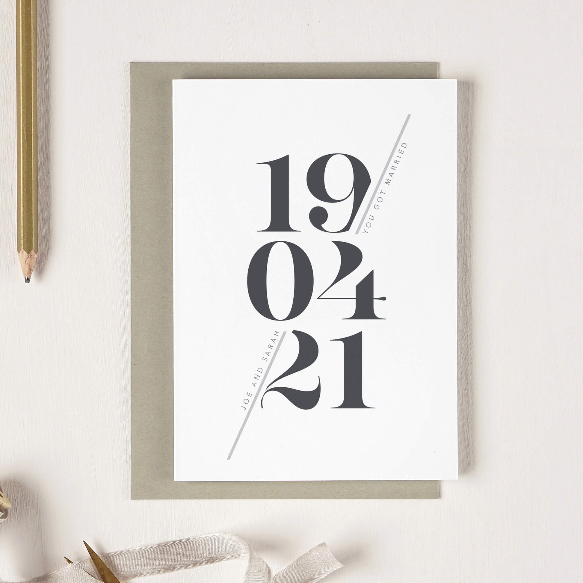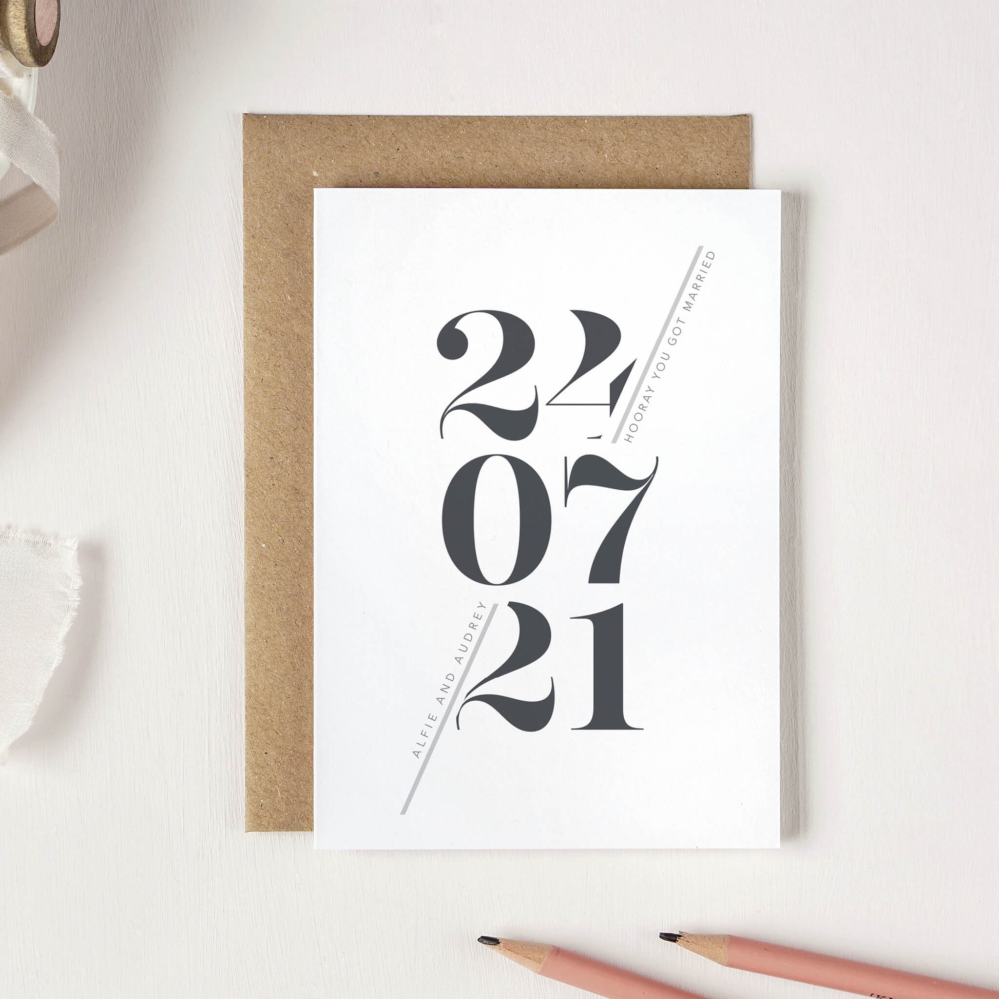 This special date card features the date as six digits in the centre of the page with space for two lines of text for you to include names or even a brief message. These personalised cards are made to order, so you can personalise them however you like, I've even made a number of save the date cards with these.