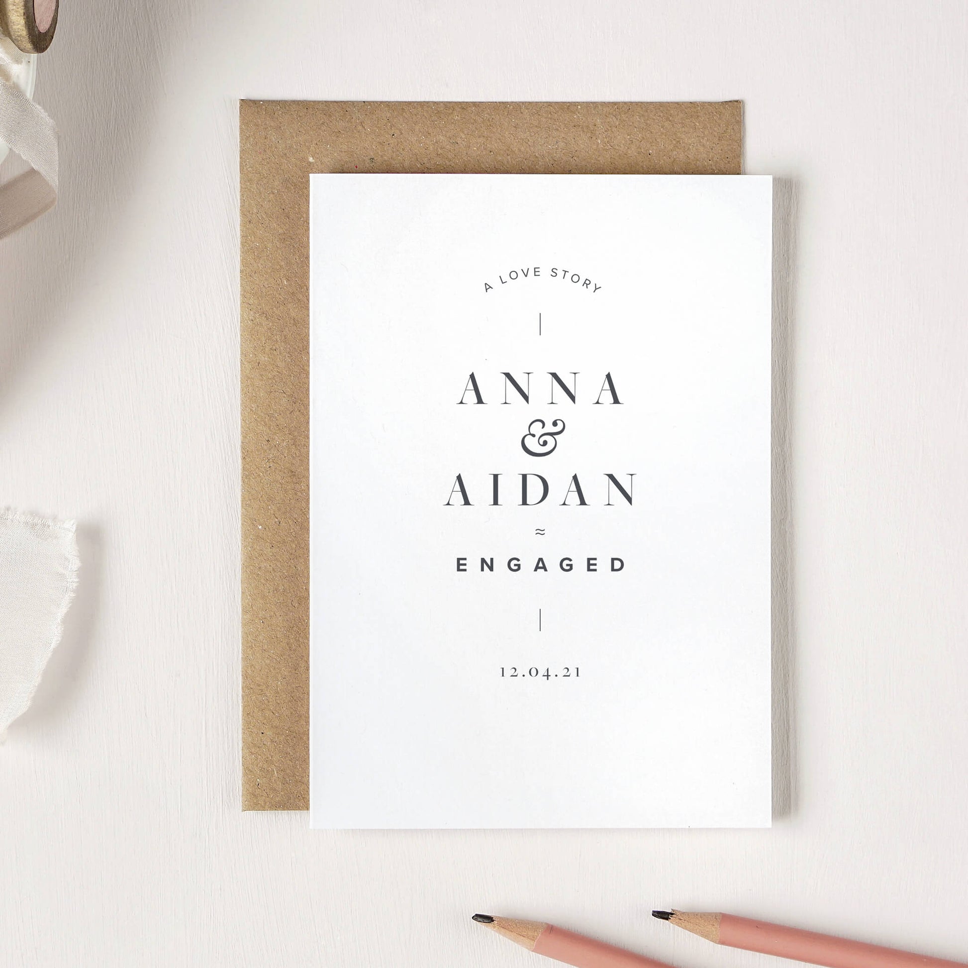 These personalised engagement cards are A6 in size and come with a storm grey peel and seal envelope for a little bit of extra luxury.