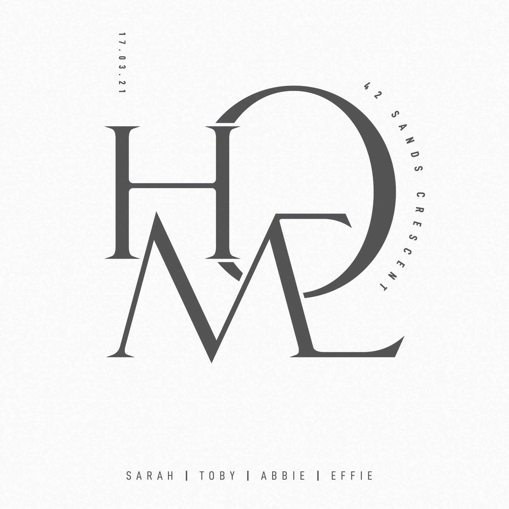 The letters on this personalised home print originated as a delicate serif typeface before being fragmented, modified and pieced back together to create this unique icon, which has been placed in the centre of the print to reflect the idea of the home being at the heart of our lives.