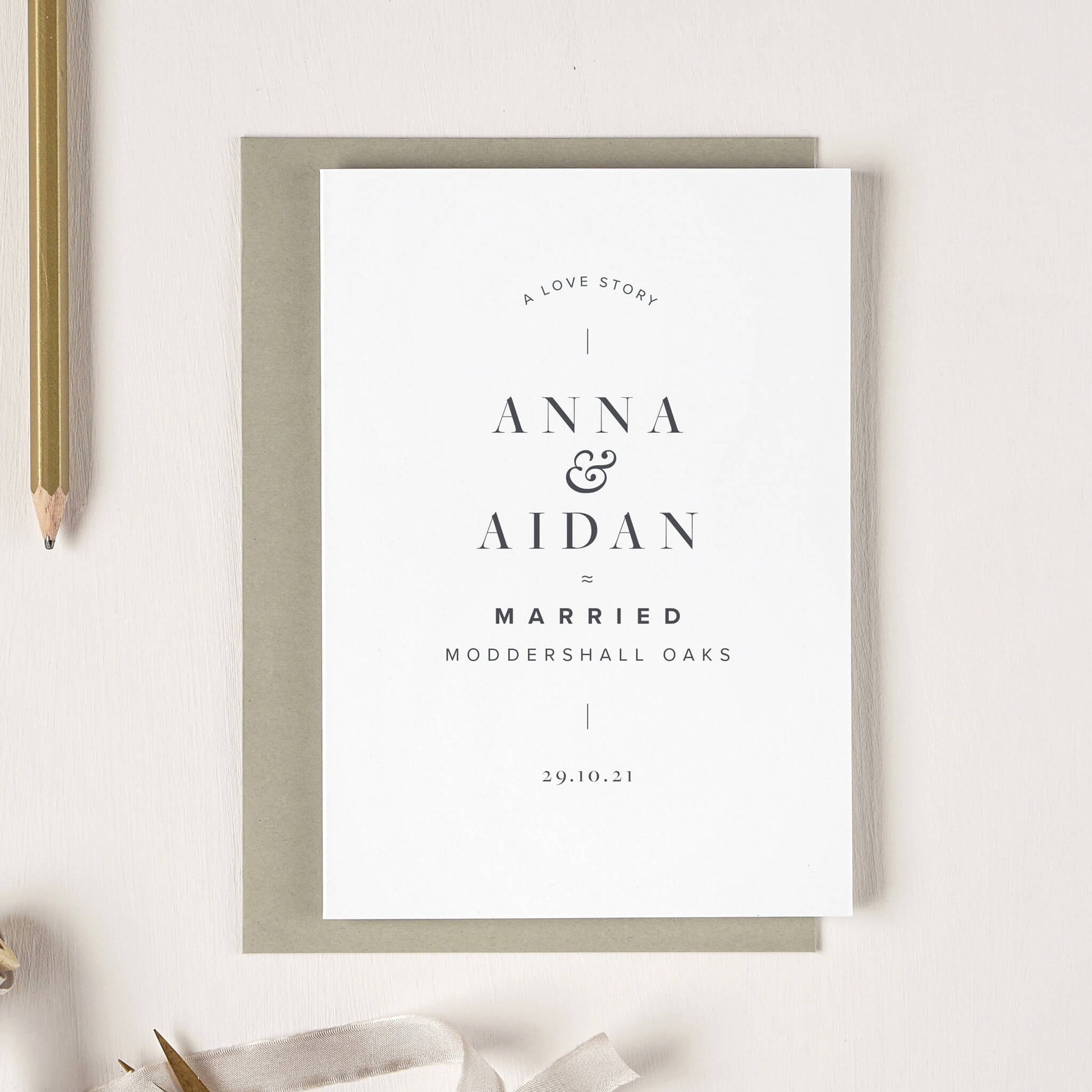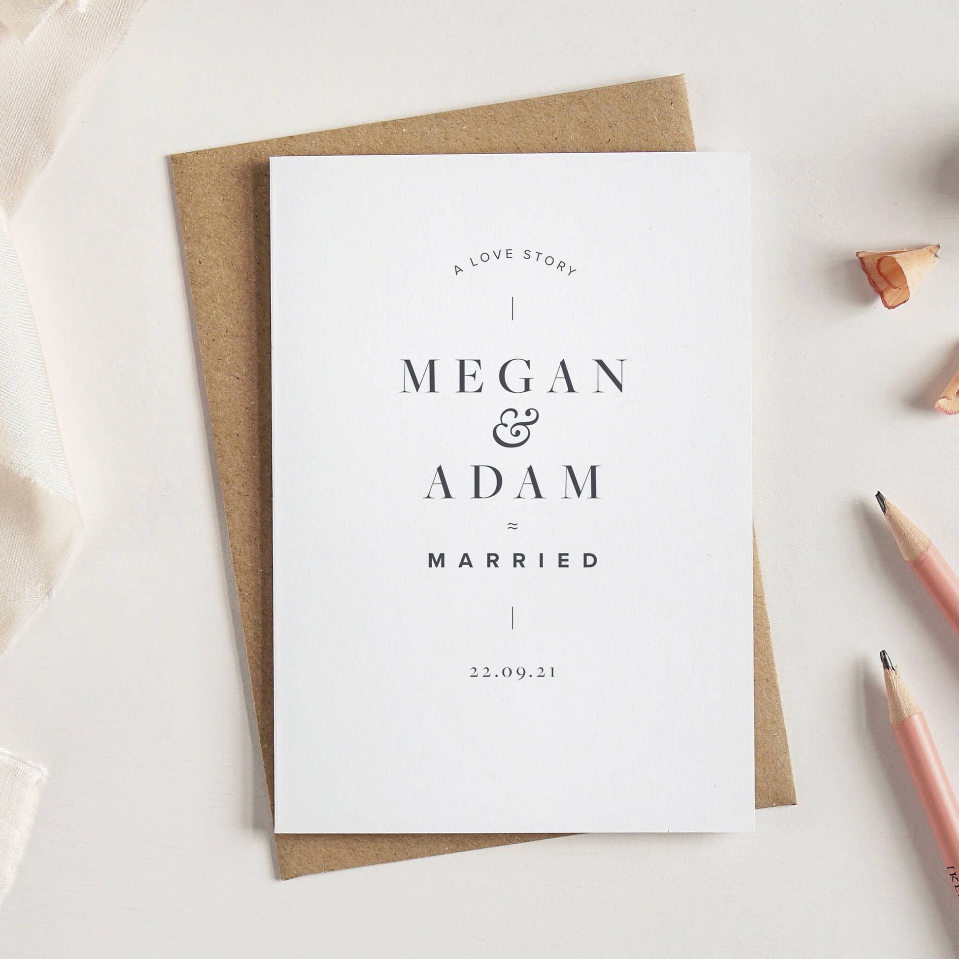This wedding day card is a beautiful blend of elegance and minimalism. Personalised with the names of the happy couple and the date of their wedding, it is a great way to congratulate them on their wonderful news and to give them a beautiful keepsake of their big day.