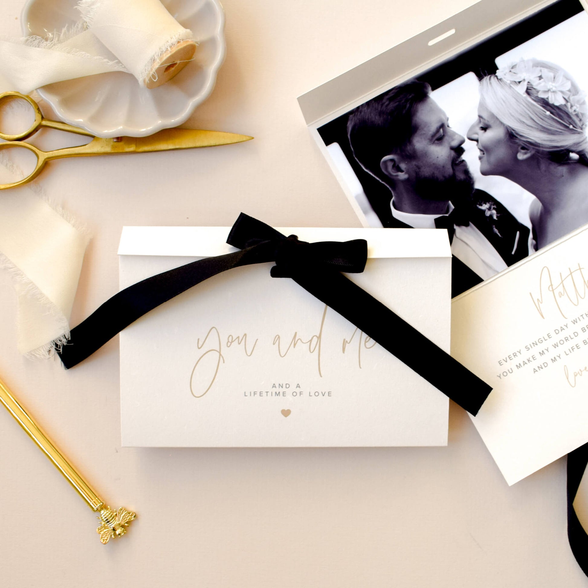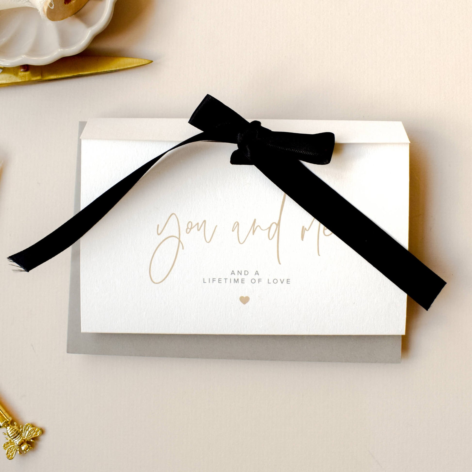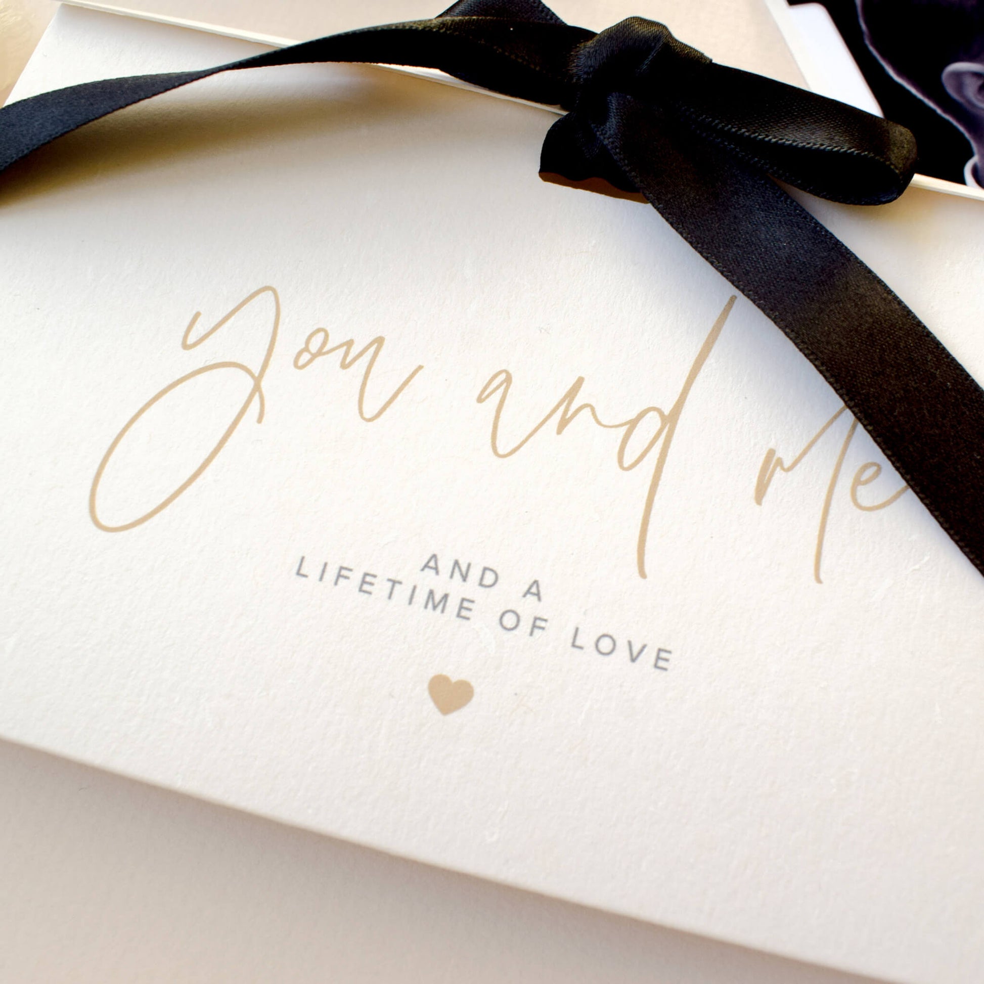 Featuring the timeless words 'You and Me and a lifetime of love' on the front, this card is perfect for Valentine’s Day, your anniversary or simply telling someone how much they mean to you. Give a gift that will be treasured always. Because some moments deserve to be held onto.