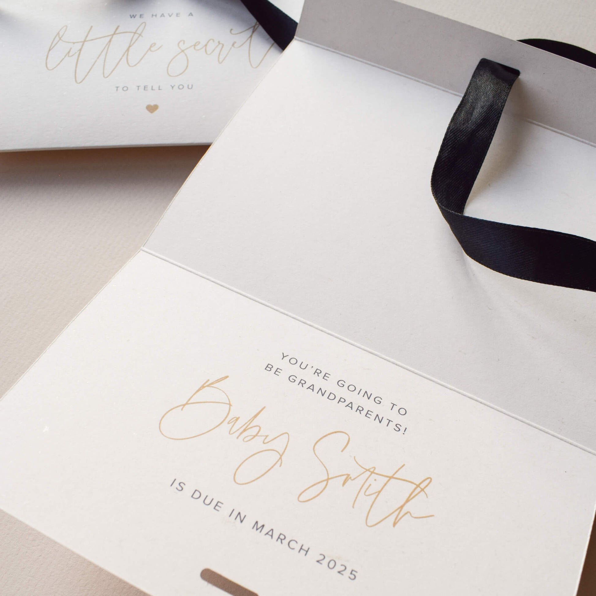 This personalised pregnancy announcement card is designed to make your pregnancy reveal a momentous occasion that your loved ones will never forget and also to give them a keepsake that they can treasure forever.
