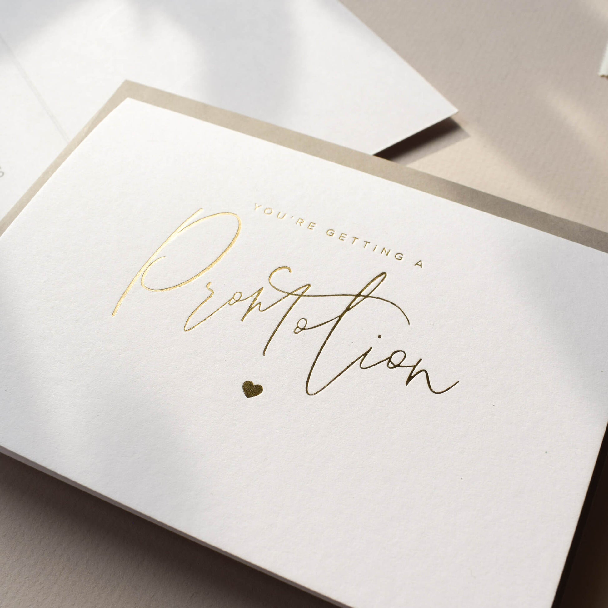 Share your exciting news in style with this elegant gold foil pregnancy announcement card, the perfect way to reveal your pregnancy to friends and family. The front of the card features the text"You're Getting A Promotion" in luxurious gold foil, making it a truly special keepsake.