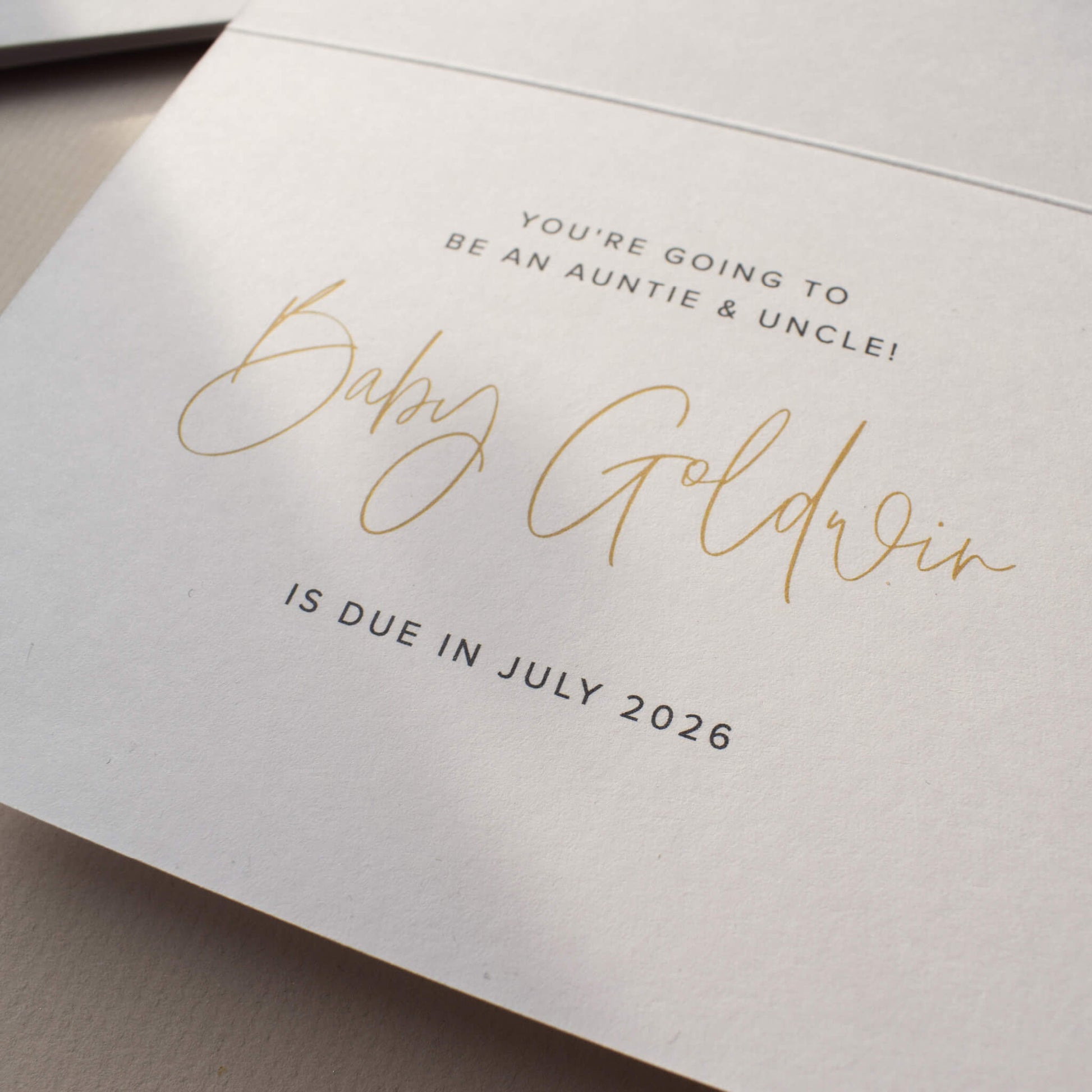 Each A6-sized card comes with a premium storm grey peel-and-seal envelope, ensuring every single detail of your card feels luxurious, as that is what your pregnancy announcement deserves.