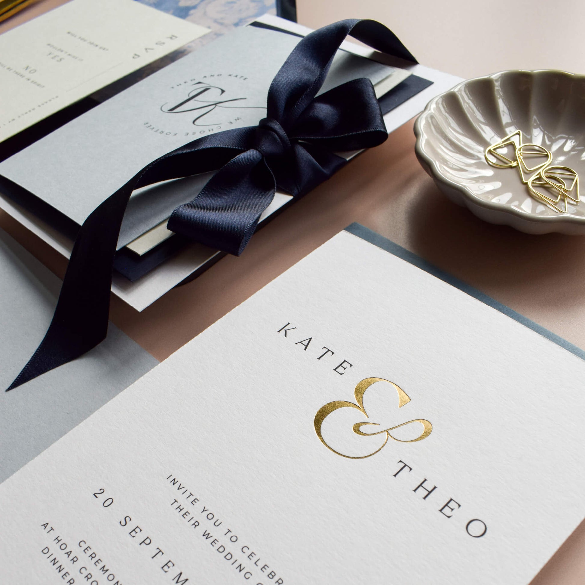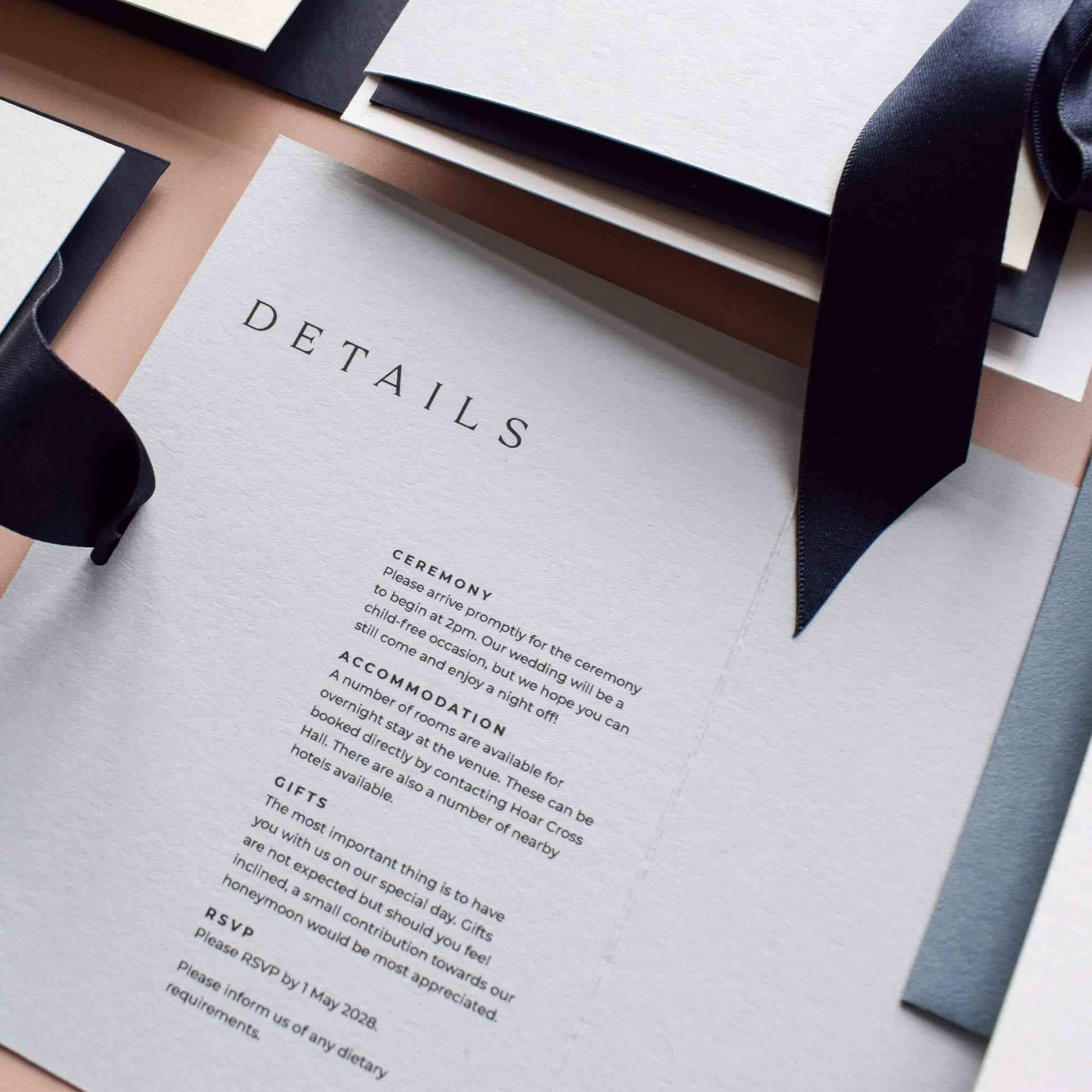 Your sample pack includes key pieces from the Ampersand wedding stationery collection so you can see how the suite works together.