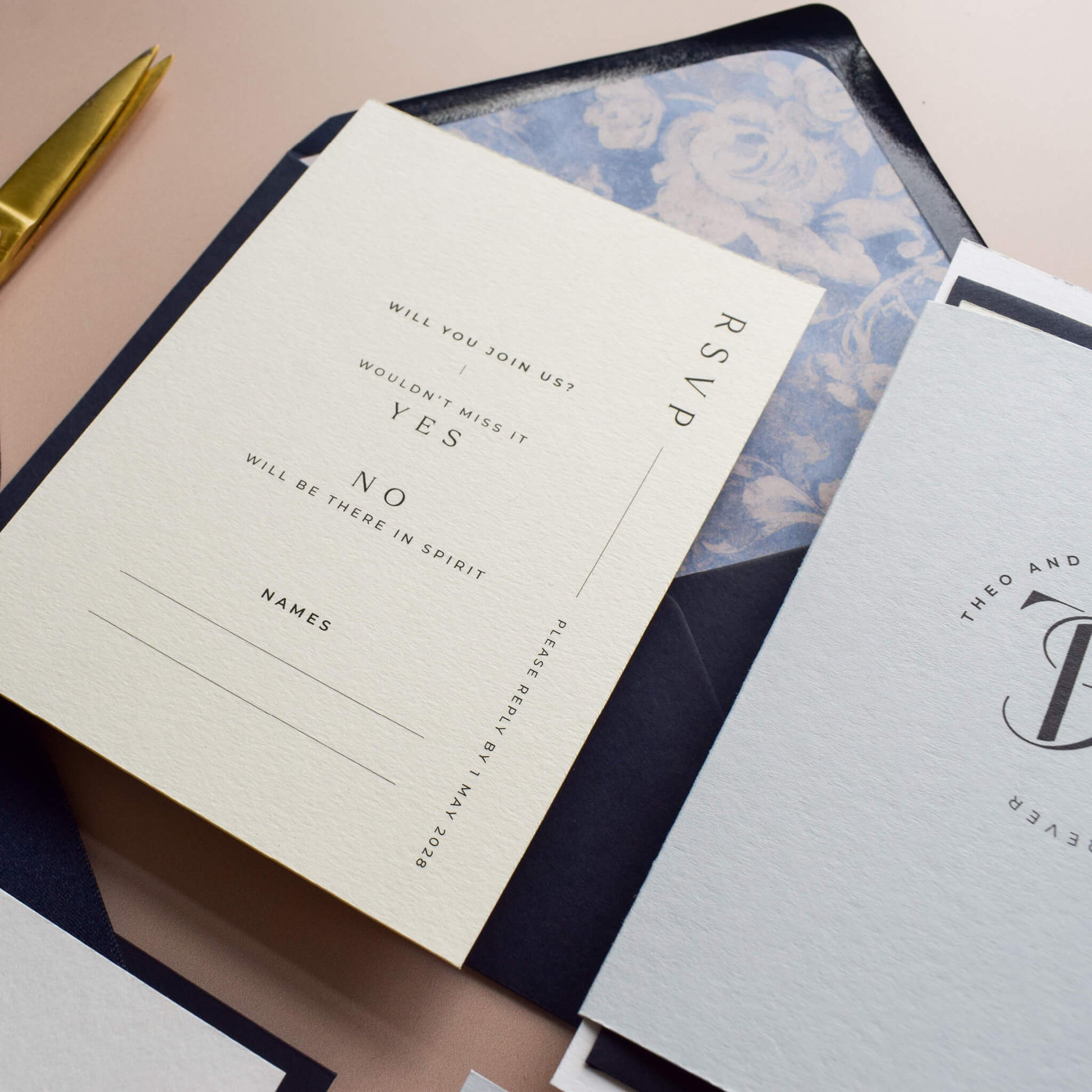Ordering a wedding invitation sample allows you to experience the materials, print quality and design before placing your full personalised stationery order. Seeing your invitations in person is the best way to appreciate the premium paper, elegant typography and luxurious hot foil finish that make this suite so special.