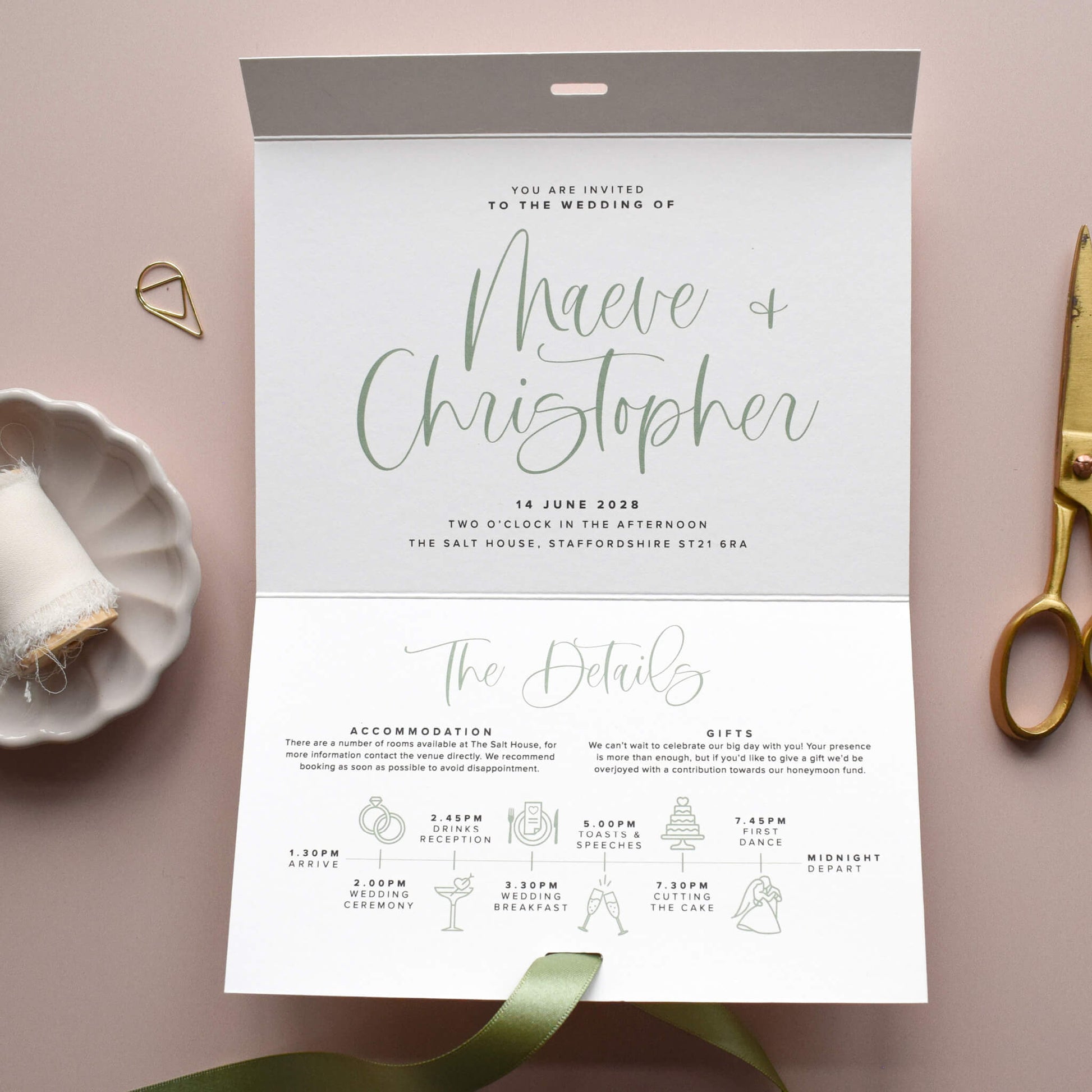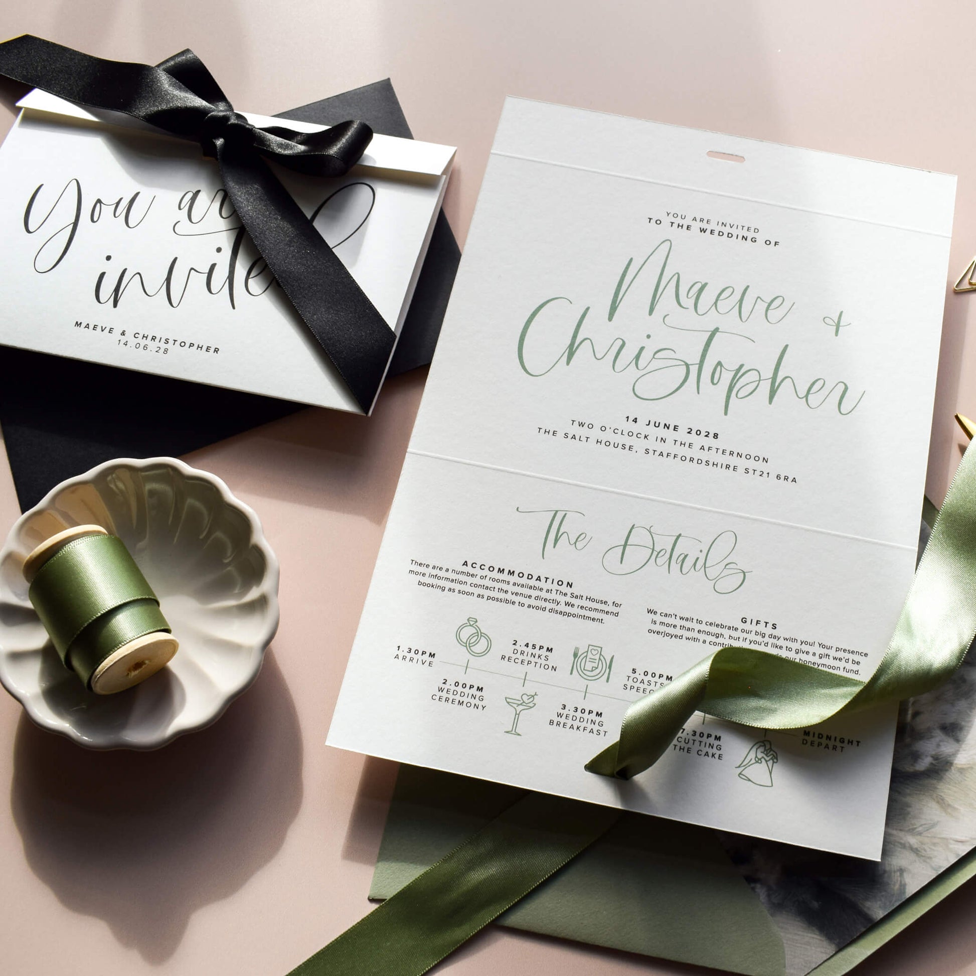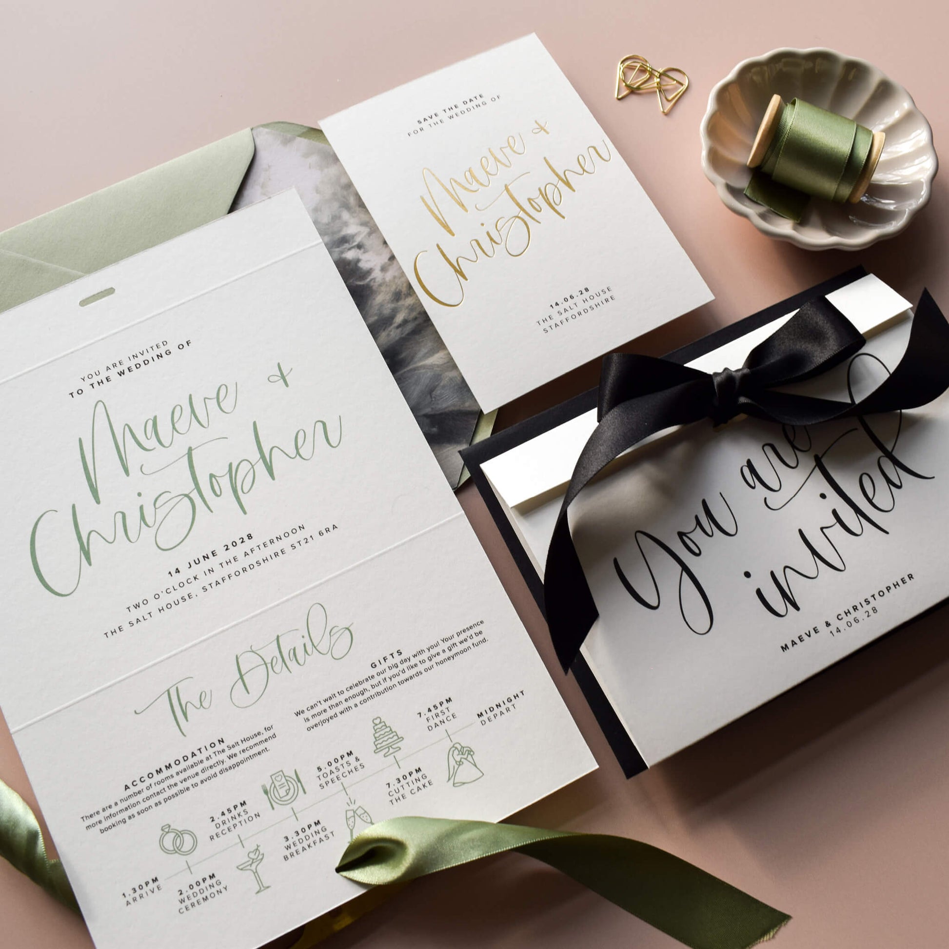 Within five working days you will receive a digital copy of your customised invitation suite via email for you to check and approve. Read more about the process here.