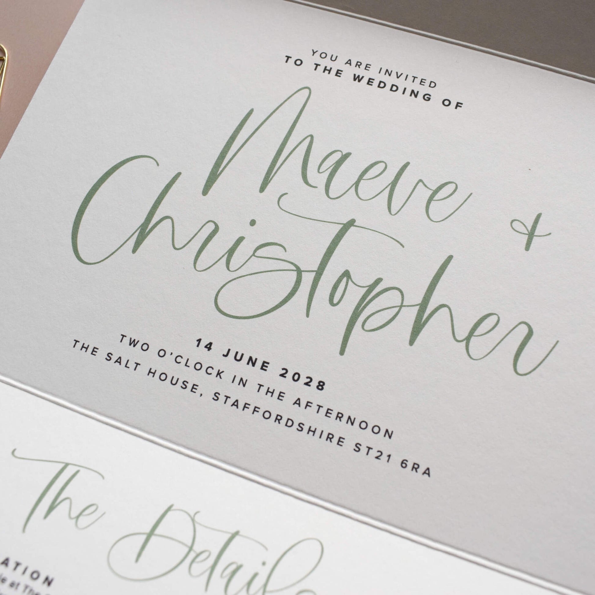 My semi-custom wedding stationery collections have been created to give you a design to base your invitations on, if you wish you can change various elements to make them unique and to reflect your personality and style. As well as changing the wording you are also able to change the colour of the paper, foil, print, envelopes and include various additional elements to enhance your stationery.