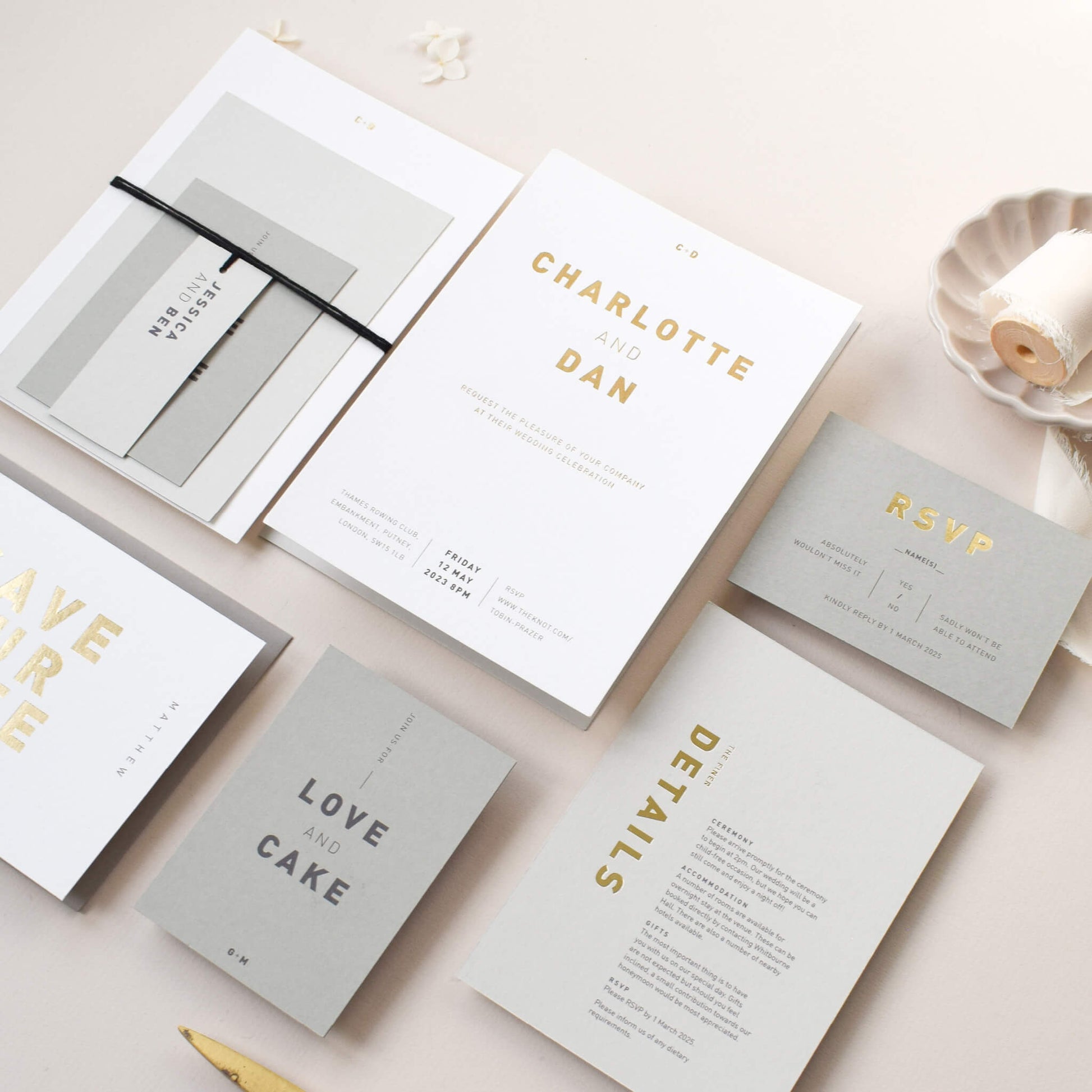 I understand the importance of seeing and feeling the quality of the invitations for yourself. Feel the luxurious heavyweight paper, run your fingers over the intricate foil detailing, and experience the timeless yet contemporary design of The Elysian Suite in person. Order your sample and hold this exquisite invitation in your hands and witness the beauty it exudes.