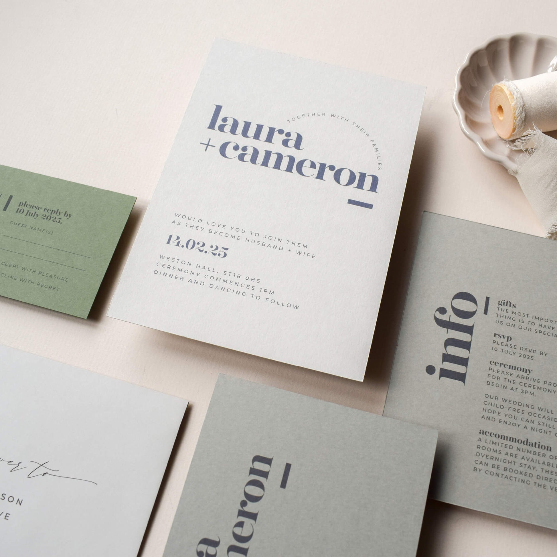 Within ten working days you will receive a digital copy of your customised invitation suite via email for you to check and approve. Read more about the process here.