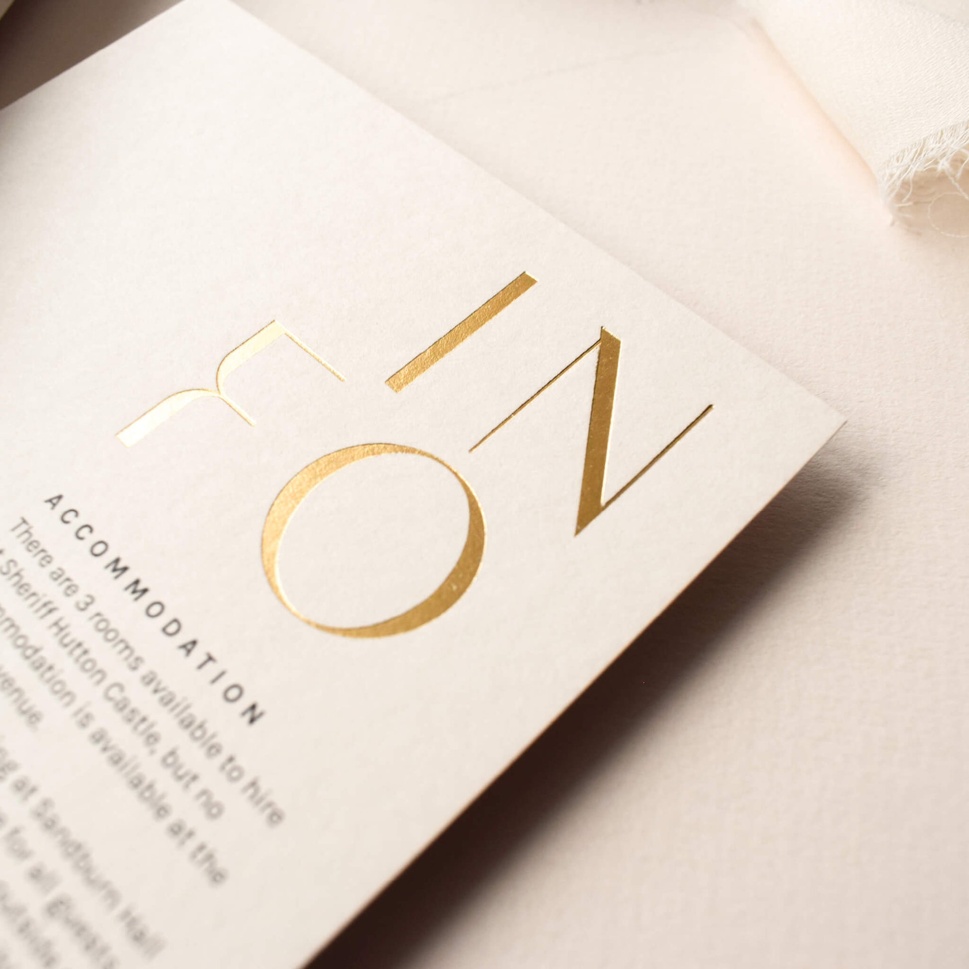 Featuring a minimalistic and modern design, the information card strikes the perfect balance between functionality and beauty, providing your guests with essential details in style. Elevating the sophistication, each card features hot foil printing, with the word 'info' gleaming in luxurious metallic accents, as depicted in the images. With the Reverie info card, every detail exudes refinement and charm, promising a wedding experience that is as memorable as it is exquisite.