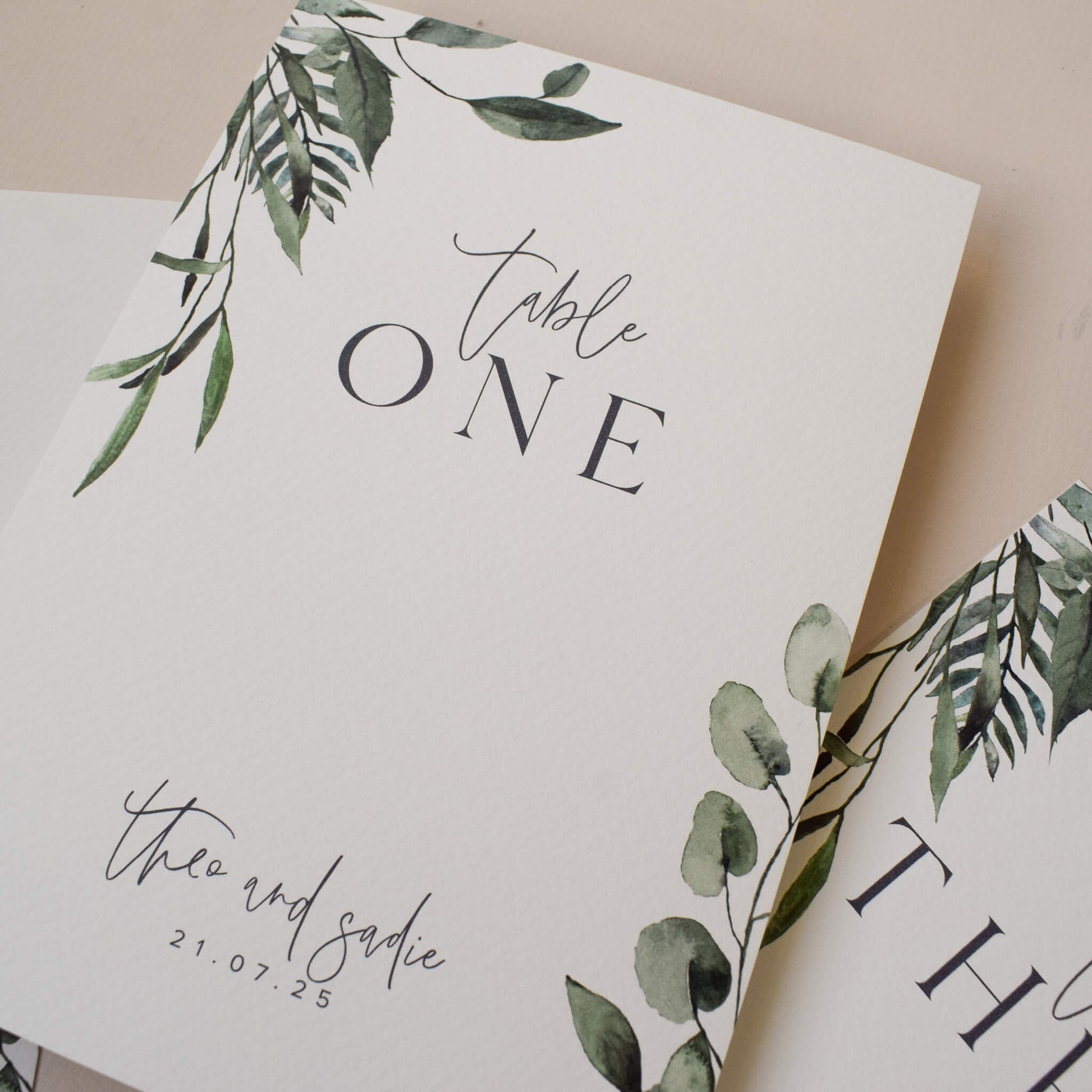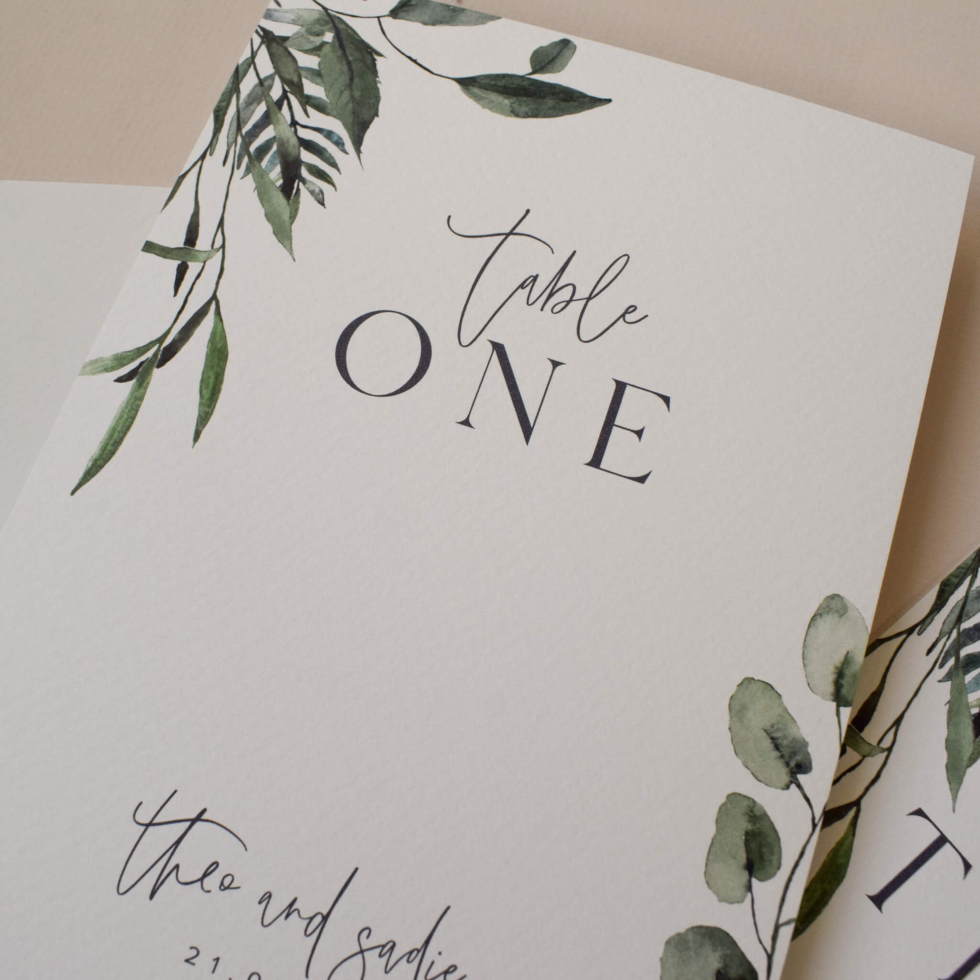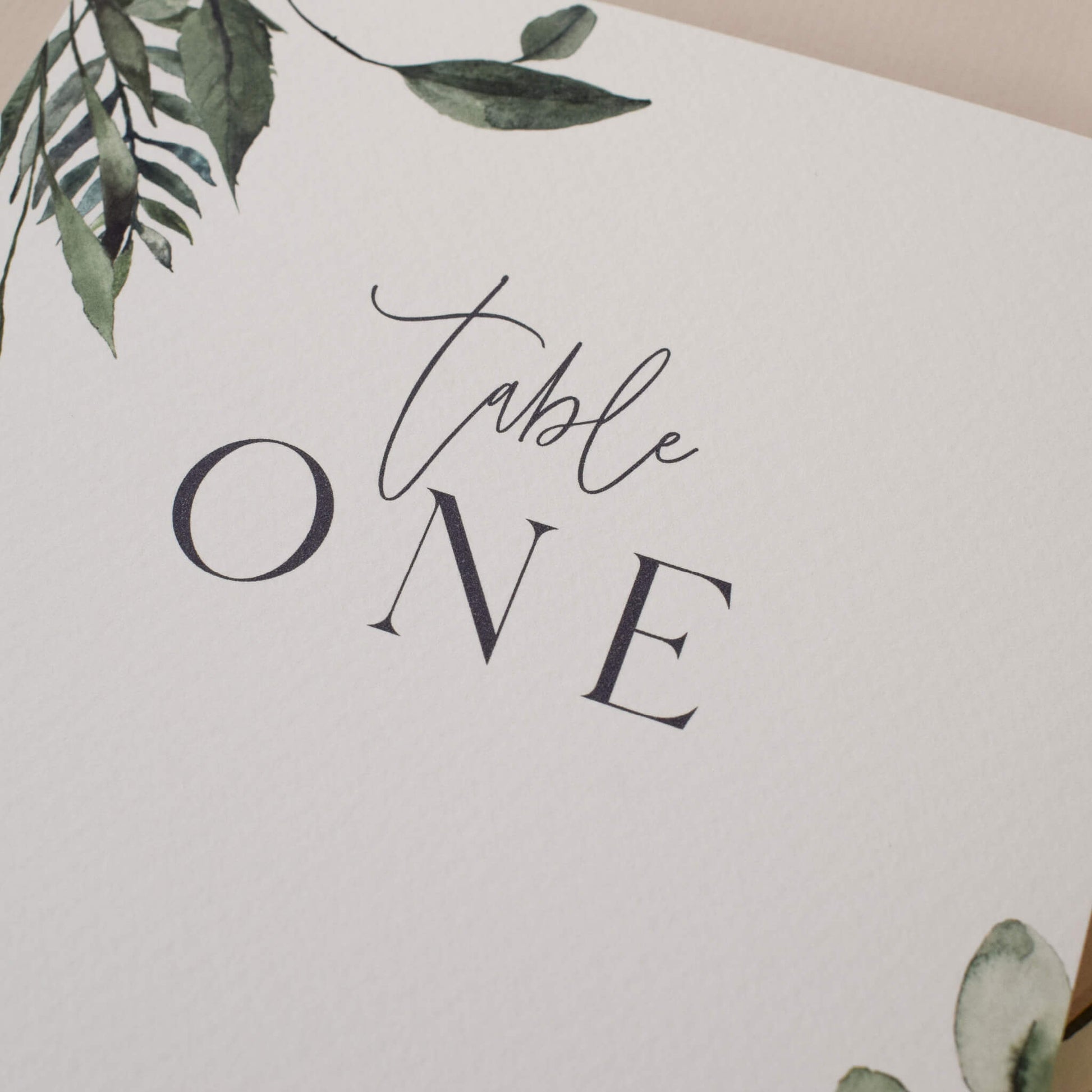 Enhance the elegance of your wedding reception with beautifully designed Wedding Table Numbers. Perfect for helping your guests to find their seats with style, these table numbers feature a minimalistic design complemented by delicate green leaf elements at the corners.