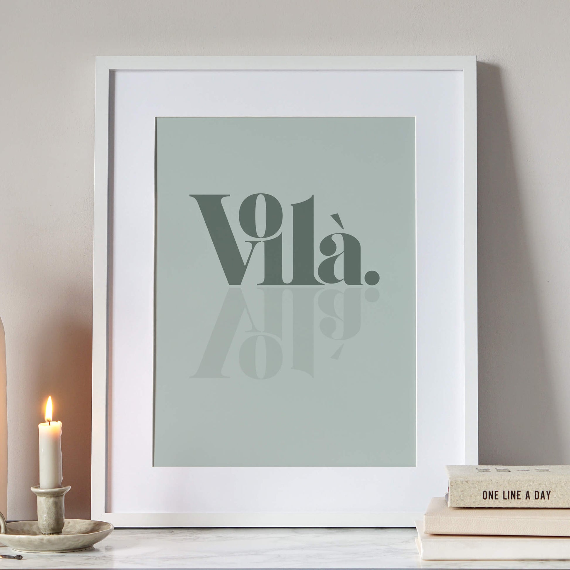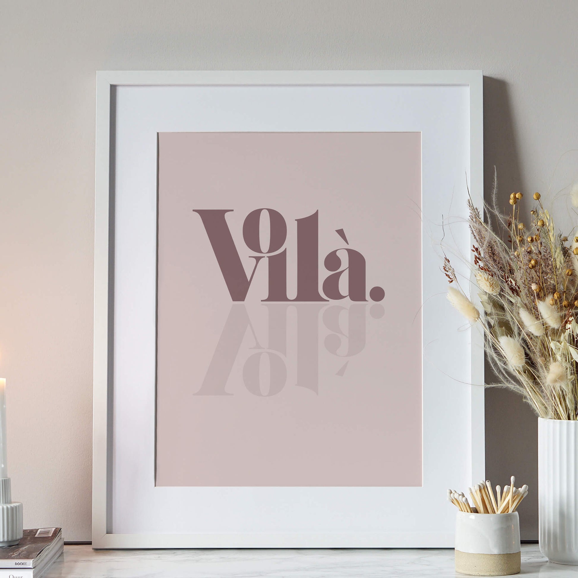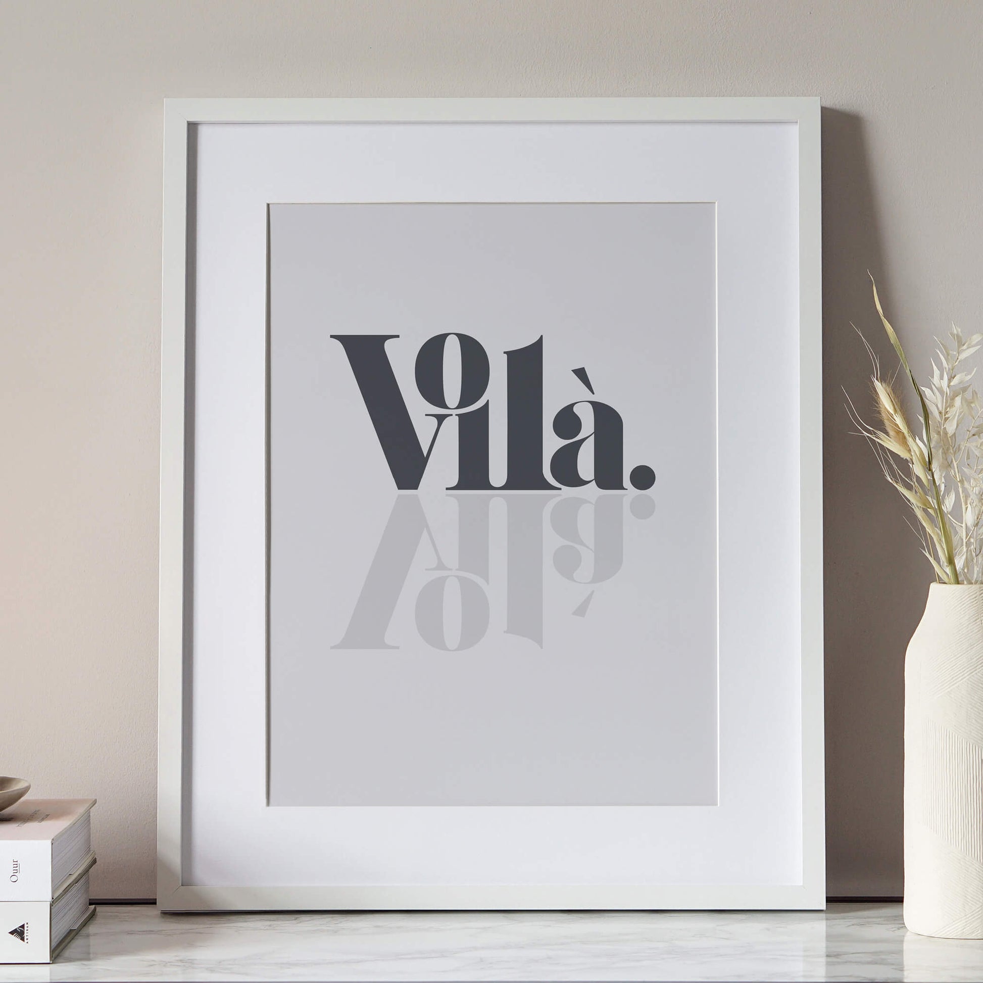 This modern home print is one of my French prints and features the word Voilá which has been designed to create a unique typographic print which look stunning in any room of your home.