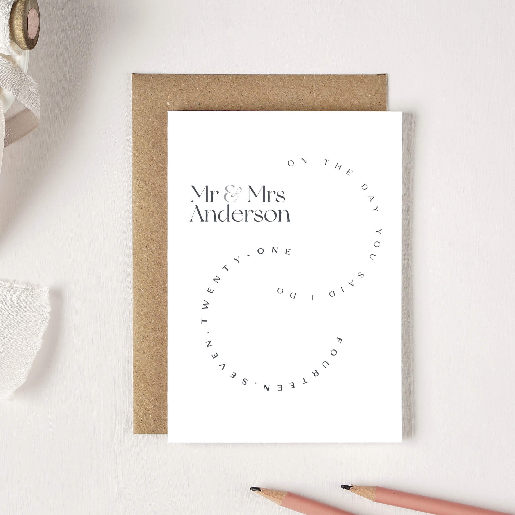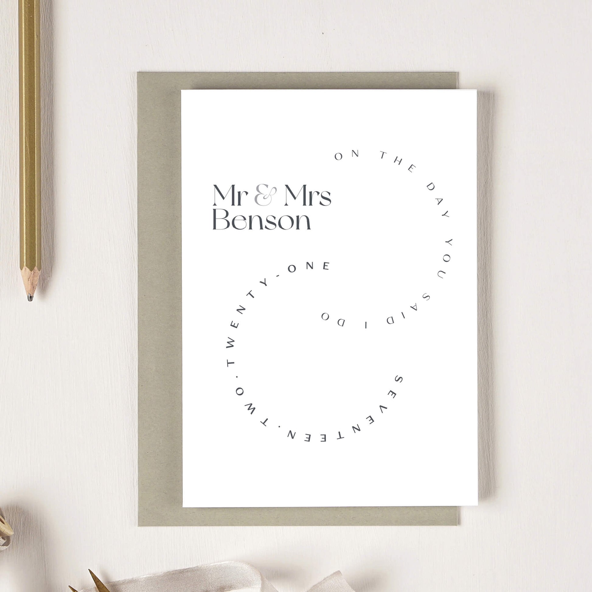 This personalised card is a perfect way to send your congratulations on a wedding or an anniversary. Not only is it personalised with the names of the couple but it also contains the date of their wedding.