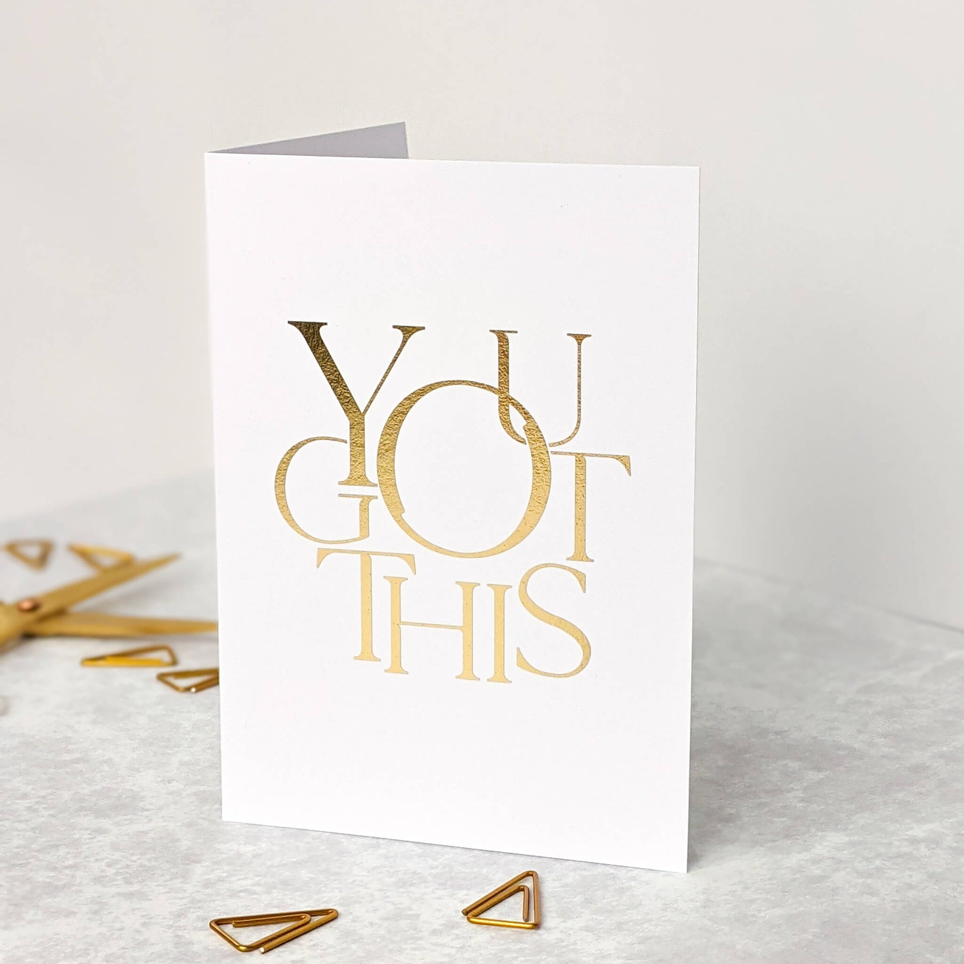 This beautiful, gold foiled 'You Got This' card is a wonderful way to send a friend your love, encouragement and support.
