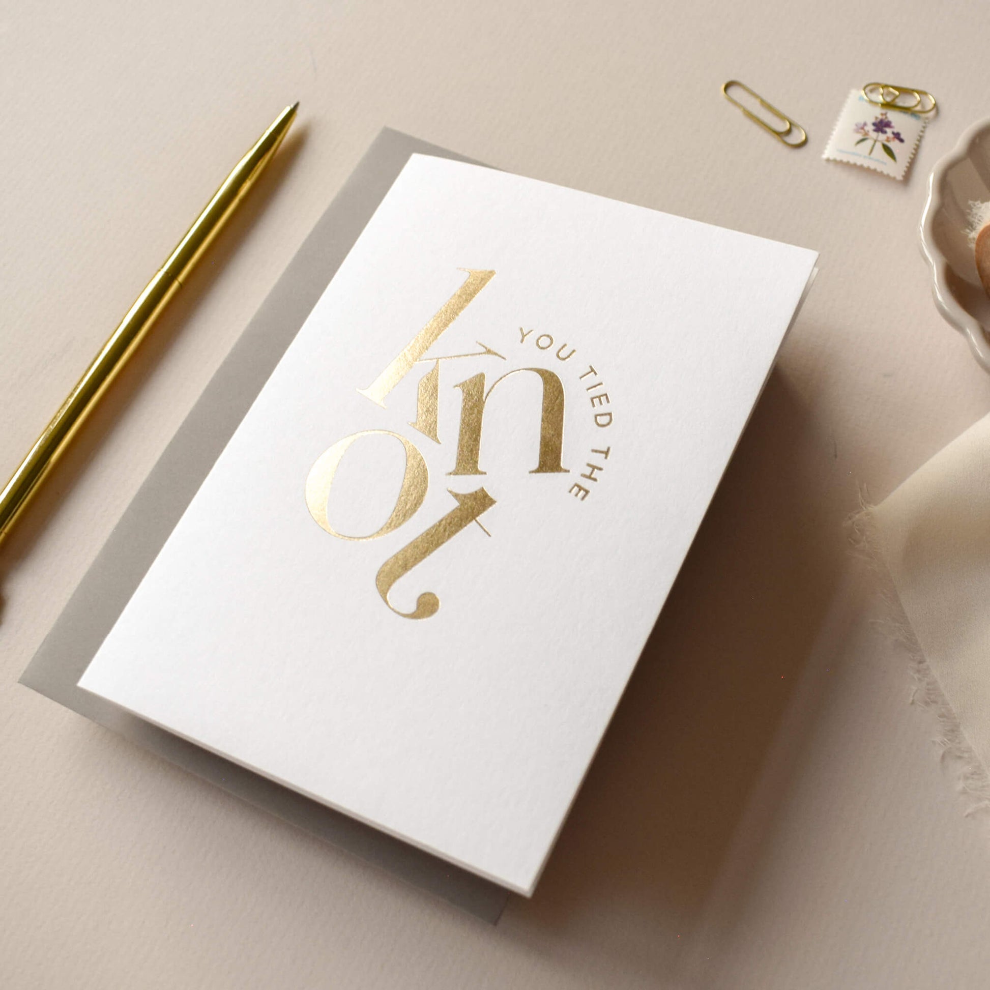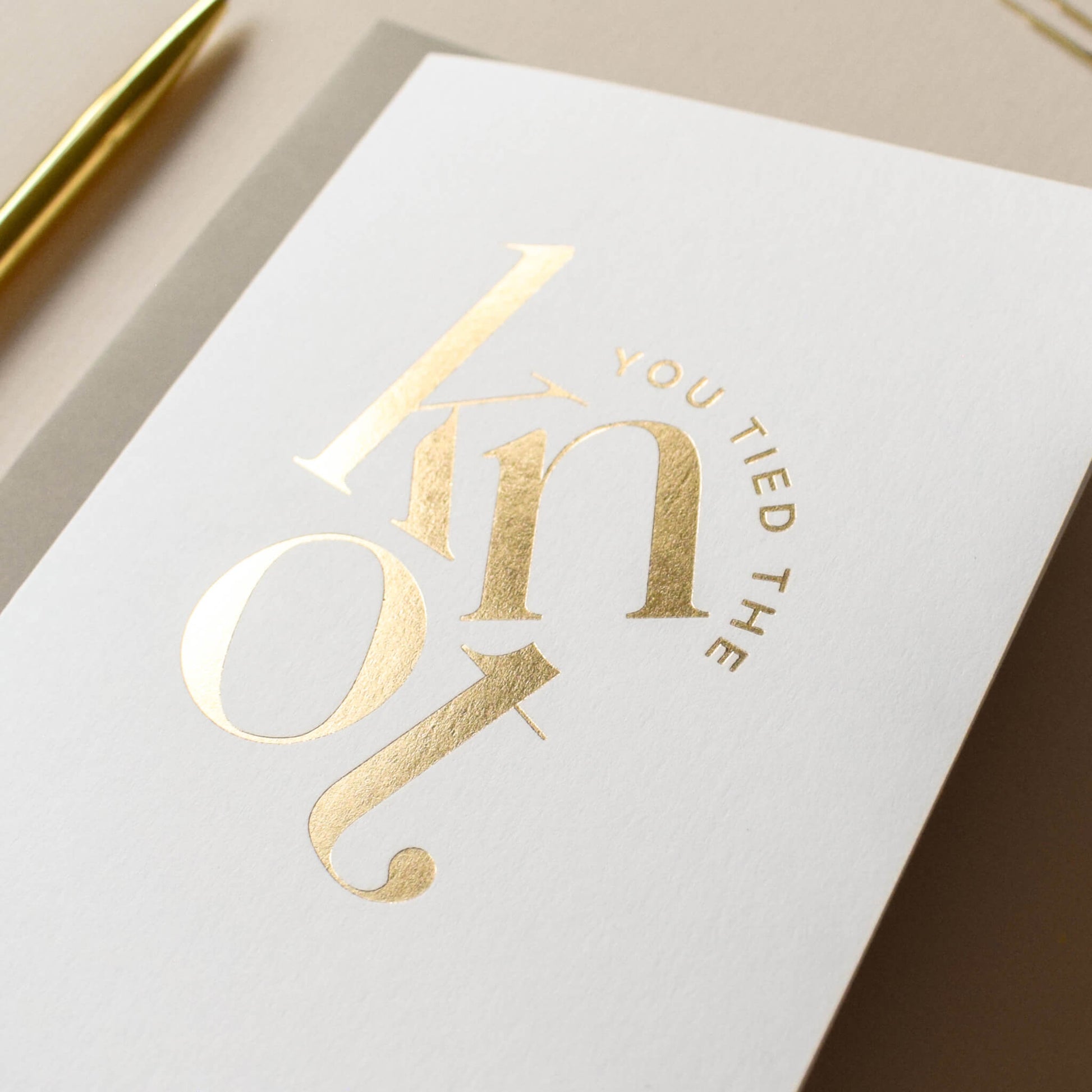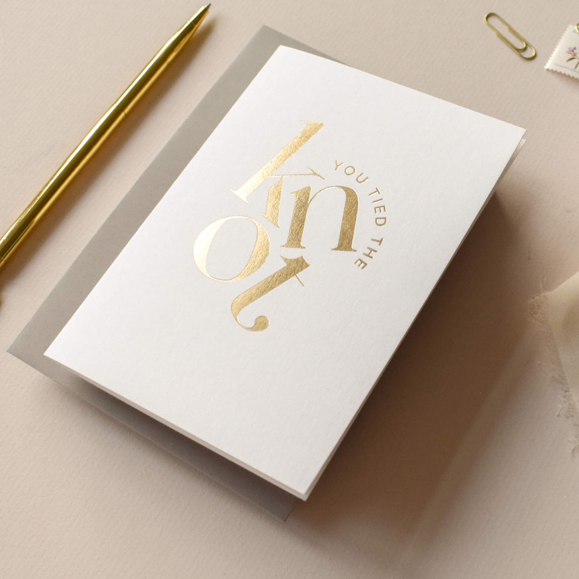 A chic and modern way to celebrate a wedding, this ‘You Tied the Knot’ card features bold, stacked lettering in luxurious gold foil. Printed on premium white card, its minimalist design exudes elegance and sophistication. Perfect for newlyweds or as a thoughtful keepsake to mark a special day, this card is as stylish as it is meaningful.
